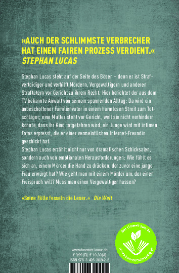 Stephan Lucas steht auf der Seite des Bösen - denn er ist Strafverteidiger. Seine Fälle sind ebenso beklemmend wie schockierend, weil sie zeigen, wie nah das Böse manchmal ist: Da entwickelt sich ein harmloser Streit zum Gewaltverbrechen und ein unbescholtener Familienvater zum Totschläger; eine Mutter wird wegen fahrlässiger Tötung angeklagt, weil sie ein Kind überfahren hat; ein Junge wird mit intimen Fotos erpresst, die er einer Internet-Freundin geschickt hat. In diesen und vielen anderen Fällen streitet der Münchner Strafverteidiger für das Recht der Angeklagten. Und weiß um sein Risiko: "Ich muss damit leben, dass ich möglicherweise dazu beigetrage, dass ein skrupelloser Vergewaltiger nach wie vor frei herumläuft."