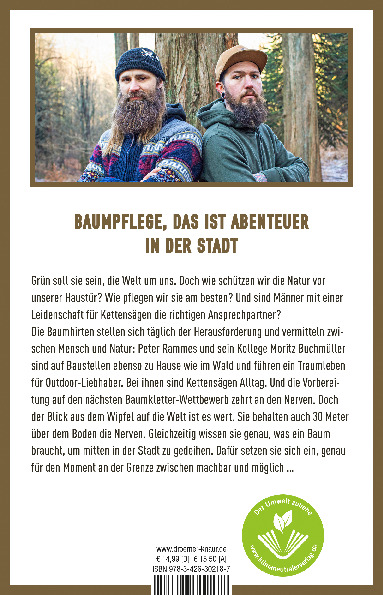 Teamwork, Technik, Schweiß und Ausdauer - täglich stellen die Baumhirten Peter Rammes und Moritz Buchmüller sich der Herausforderung, zwischen Natur und Mensch zu vermitteln, und sorgen für Sicherheit, wo beide sich Lebensraum teilen. Als Garten- und Landschaftsbauer haben sie ihren eigenen Baumpflege-Fachbetrieb. Sie bilden aus - im Baumklettern und an der Motorsäge. Und sie nehmen alljährlich an Baumkletter-Meisterschaften teil, wenn sie nicht gerade beruflich im Baum sitzen und den Blick über die Welt genießen.