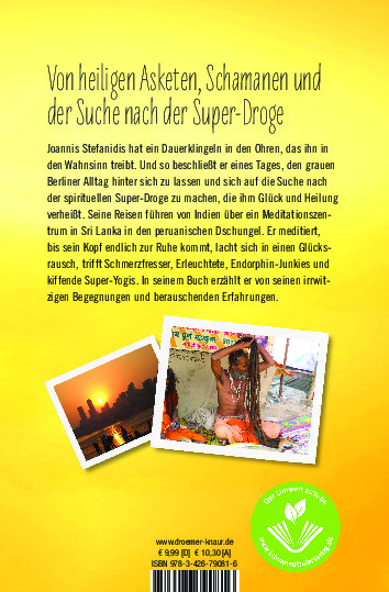 Wie findet man den besten Weg zu sich selbst und einem erfüllten, glücklichen Leben? Diese Frage stellt sich Joannis Stefanidis, der immer mehr unter der inneren Unruhe durch seinen aufreibenden Alltag in Deutschland leidet. Kurz entschlossen beginnt er in Bombay eine berauschende Reise auf der Suche nach Erleuchtung und Antworten. In Indien hofft er, Heilung zu finden, doch zuerst lernt er, was es heißt, den Schmerz zu besiegen. Stefanidis' Reisen sind Jagden nach Glück und Erfüllung, führen von Meditationszentren in Sri Lanka über Singapurs Prunkpaläste bis in die Slums Kalkuttas. Er begegnet Endorphin-Junkies und Schmerzfressern, Schamanen und kiffenden Super-Yogis. Und wie nah sich das Erhabene und das Profane zuweilen kommen können, lernt Stefanidis spätestens, als er mit einem Koffer voll Viagra auf dessen rechtmäßigen Besitzer wartet.
