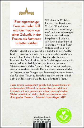 Würzburg im 19. Jahrhundert: Bankierstochter Viviana Winkelmann träumt davon, Ärztin zu werden - obwohl Frauen seit 1800 nicht mehr studieren dürfen. Als die junge Frau sich unstandesgemäß verliebt und schwanger wird, wirft ihre Familie sie aus dem Stadtpalais. Um sich und ihre kleine Tochter Ella über Wasser zu halten, verdingt sich die einst vornehme Viviana als Gehilfin in der Apotheke des renommierten Würzburger Juliusspitals. Doch soll das wirklich alles sein, was sie als Frau im Leben erreichen kann? Sie belauscht Vorlesungen berühmter Ärzte am Spital und lernt Professor Virchow kennen, der einer Weltsensation auf der Spur ist. Ihre Zukunft, das spürt sie, liegt als Ärztin im Spital - auch wenn ihr dadurch nicht nur der eigene Bruder zum erbitterten Feind wird.