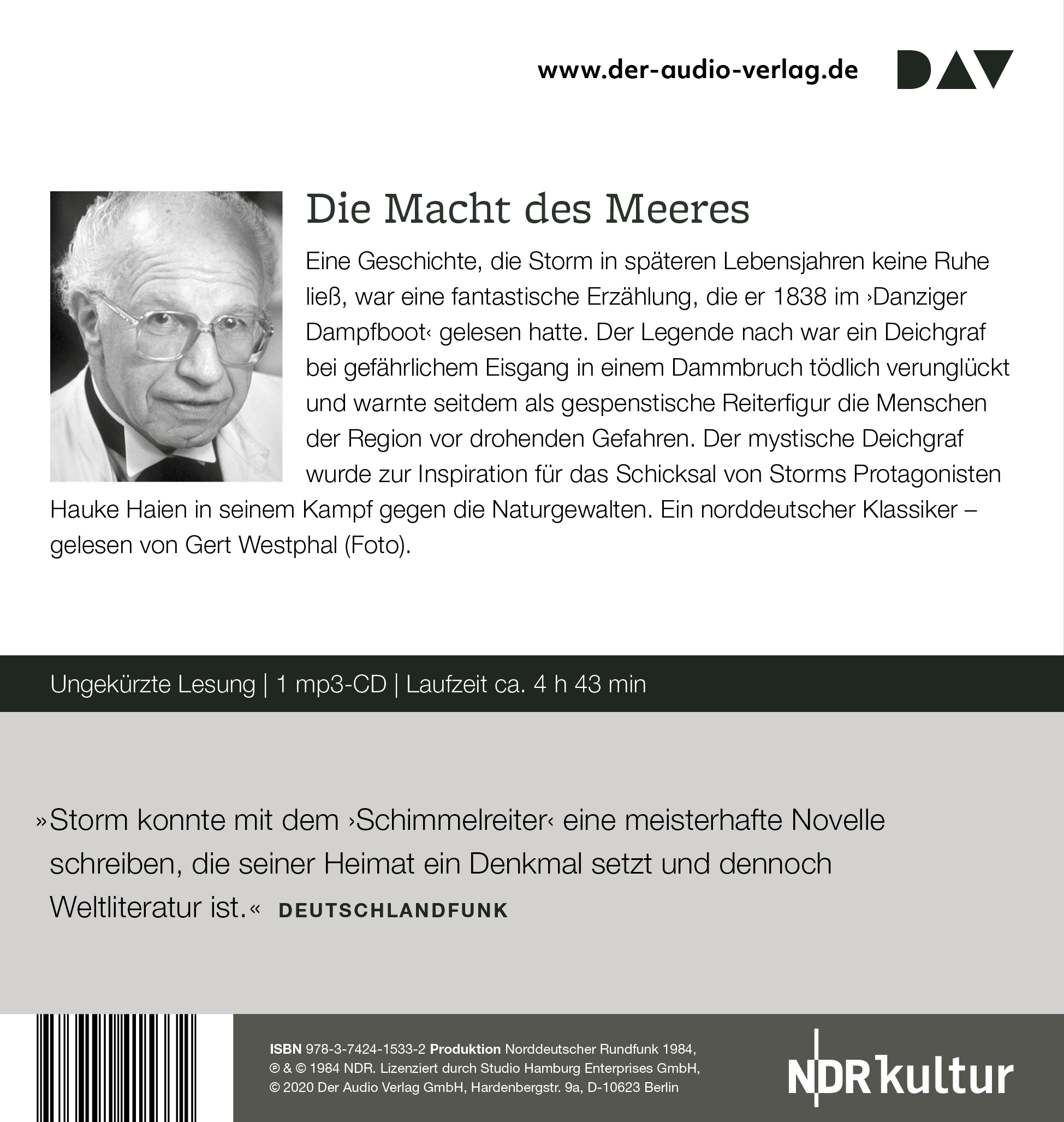 »Tatkraft gegen Trägheit, Moderne gegen Beharrungsvermögen, Aufklärung gegen Aberglaube - im 'Schimmelreiter' zeichnet Theodor Storm einen Helden, der an die Überlegenheit des Fortschritts glaubt.« DEUTSCHLANDFUNK