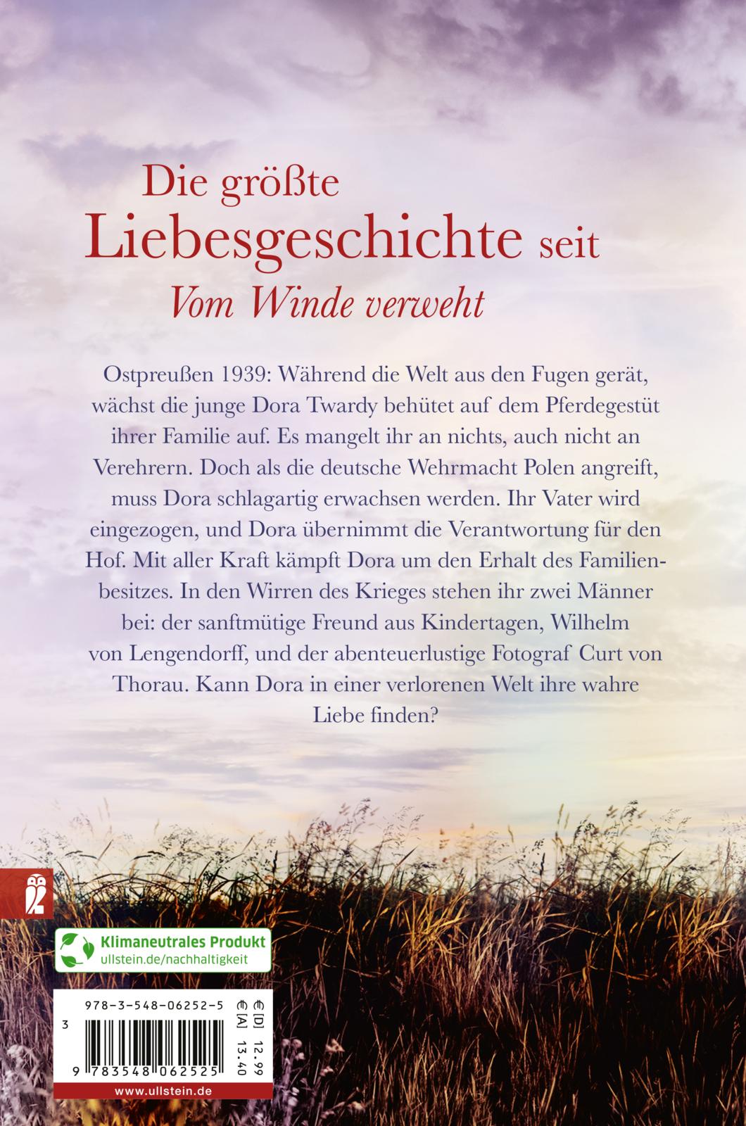 Ostpreußen 1939: Während die Welt aus den Fugen gerät, wächst die junge Dora Twardy behütet auf dem Pferdegestüt ihrer Familie auf. Der Tochter des Gutsherren mangelt es an nichts, auch nicht an Verehrern. Doch als die deutsche Wehrmacht Polen angreift, muss Dora schlagartig erwachsen werden. Ihr Vater wird eingezogen und Dora übernimmt die Verantwortung für den Hof. Mit aller Kraft kämpft Dora um den Erhalt des Familienbesitzes. In den Wirren des Krieges stehen ihr zwei Männer bei: der sanftmütige Freund ihres Bruders, Wilhelm von Lengendorff, und der abenteuerlustige Kriegsfotograf Curt von Thorau. Zu spät erkennt Dora, wen sie wirklich liebt ...