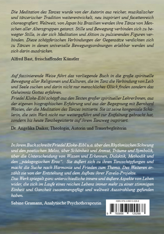 Friedel Kloke-Eibl schöpft aus den Texten großer spiritueller LehrerInnen, aus der eigenen biographischen Erfahrung und aus der Begegnung mit Bernhard Wosien, der die Meditation des Tanzes initiierte. Sie ist seine kongeniale Schülerin, die sein Werk nicht nur weitergeführt und zur Entfaltung gebracht hat, sondern bis heute Tanzbegeisterte auf ihrem Tanzweg inspiriert.