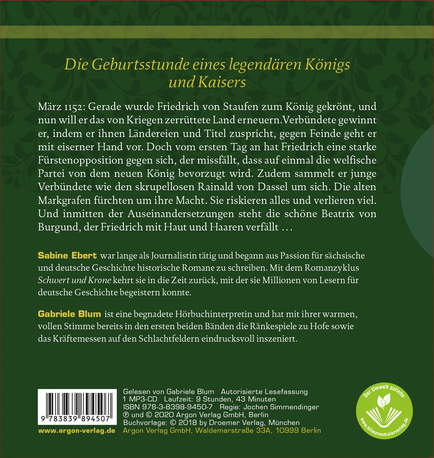 März 1152: Gerade wurde Friedrich von Staufen zum König gekrönt, und nun will er das von Kriegen zerrüttete Land erneuern. Verbündete gewinnt er, indem er ihnen Ländereien und Titel zuspricht, gegen Feinde geht er mit eiserner Hand vor. Doch vom ersten Tag an hat Friedrich eine starke Fürstenopposition gegen sich, der missfällt, dass auf einmal die welfische Partei von dem neuen König bevorzugt wird. Zudem sammelt er junge Verbündete wie den skrupellosen Rainald von Dassel um sich. Die alten Markgrafen fürchten um ihre Macht. Sie riskieren alles und verlieren viel. Und inmitten der Auseinandersetzungen steht die schöne Beatrix von Burgund, der Friedrich mit Haut und Haaren verfällt ...