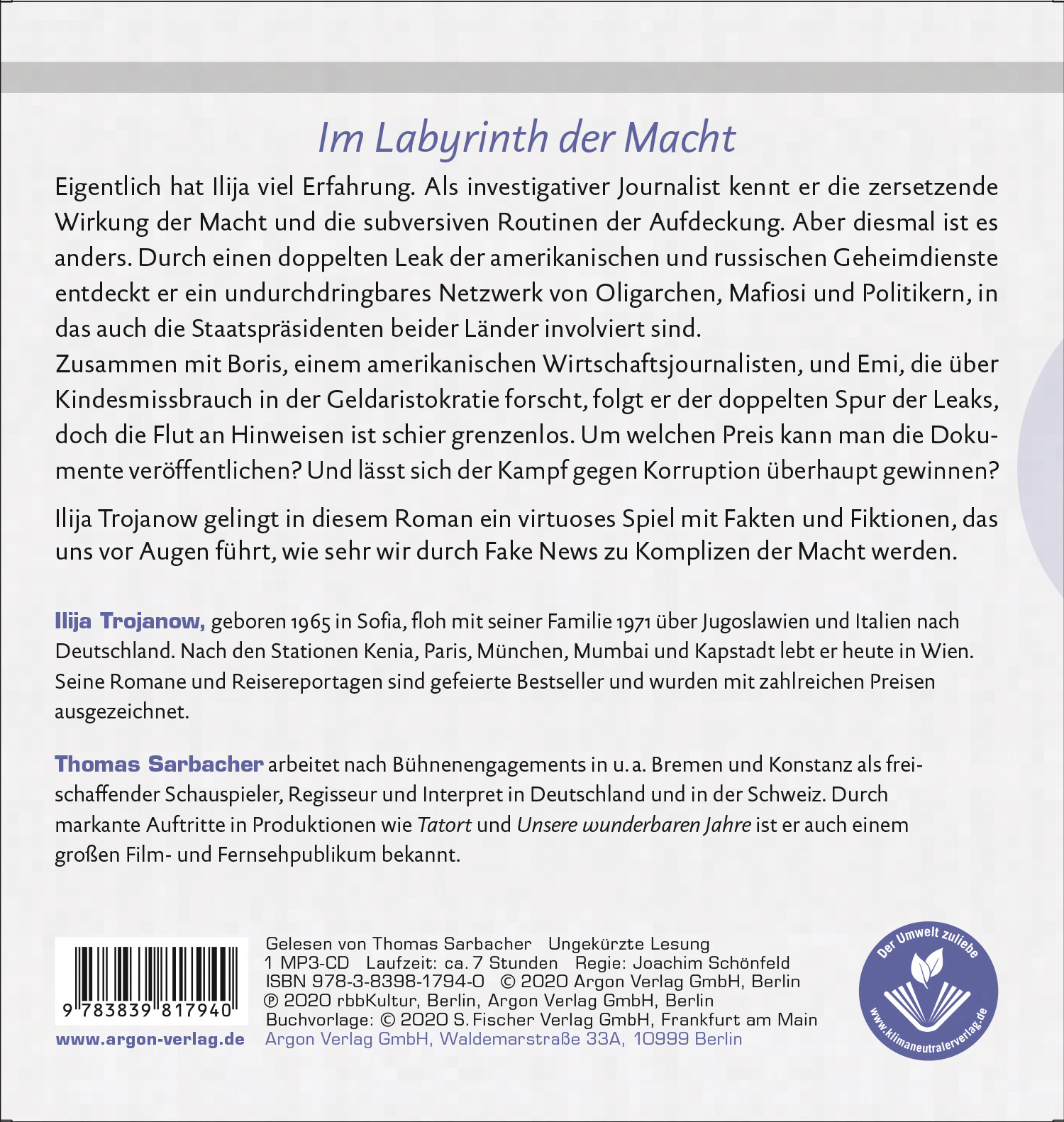 Eine Reise ins Labyrinth der Macht. Literarisch virtuos wie kein anderer spielt Ilija Trojanow mit Fakten und Fiktionen und führt uns wie nebenbei vor Augen, wie sehr wir durch Fake News zu Komplizen der Macht werden.
