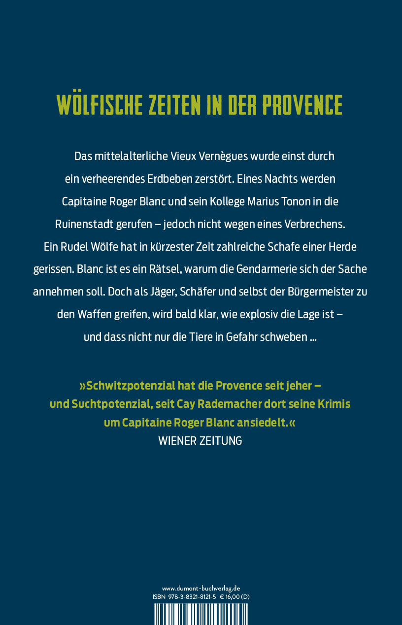 Jetzt ist Vieux Vernègues eine Geisterstadt, ein verlassenes Trümmerfeld im Schatten einer düsteren Burgruine. Alarmiert wurde die Gendarmerie von zwei alten Schafhirten. Zwölf Tiere ihrer Herde wurden in weniger als einer Stunde getötet – von Wölfen.