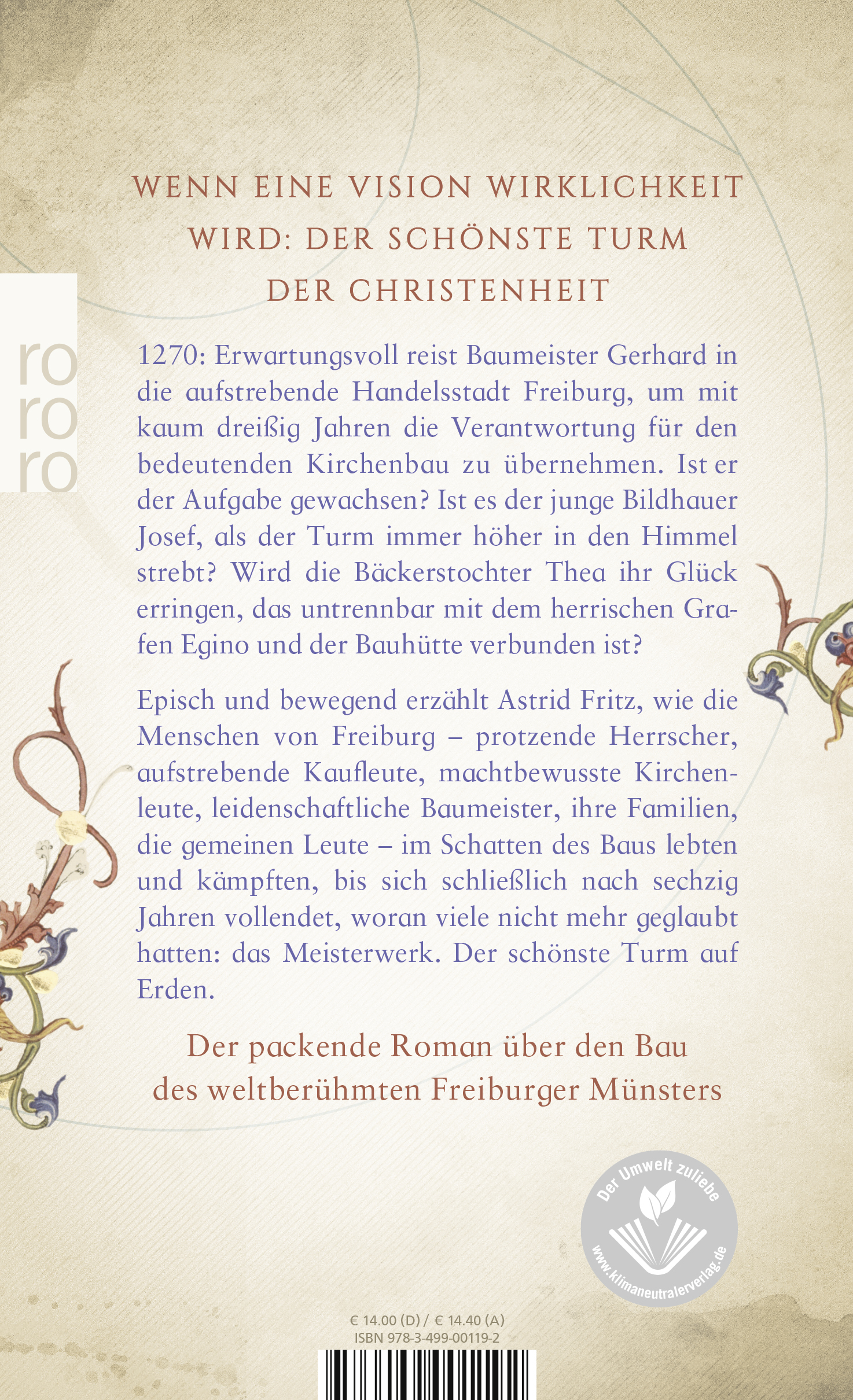 | Schlagworte | Baden • Baugeschichte • Bauhütte • Bauhütte • Bauwerk • Freiburg • Freiburger Münster • Freiburger Münster • Gotik • Grafenherrschaft • Historischer Roman • Kathedrale • Kathedrale des Meeres • Ken Follett • Meisterwerk der Gothik • Stadtgeschichte • Steinmetz • Turm aus Licht • Turmbau |