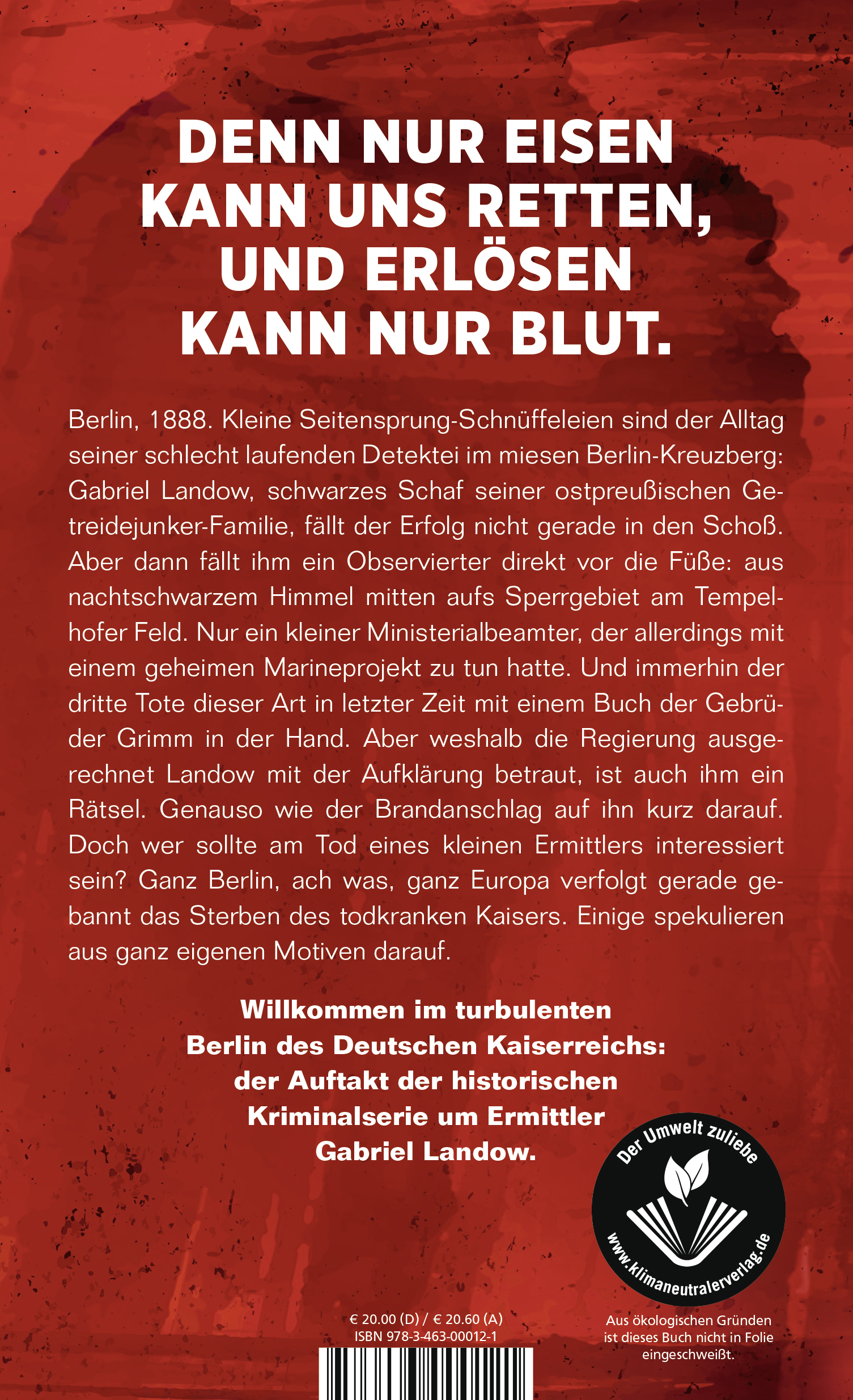 Wer sollte am Tod eines kleinen Ermittlers interessiert sein? Wo doch ganz Berlin, ach was, ganz Europa, nur gebannt auf das Sterben des todkranken Kaisers wartet, das einige aus ganz eigenen Motiven herbeisehnen.