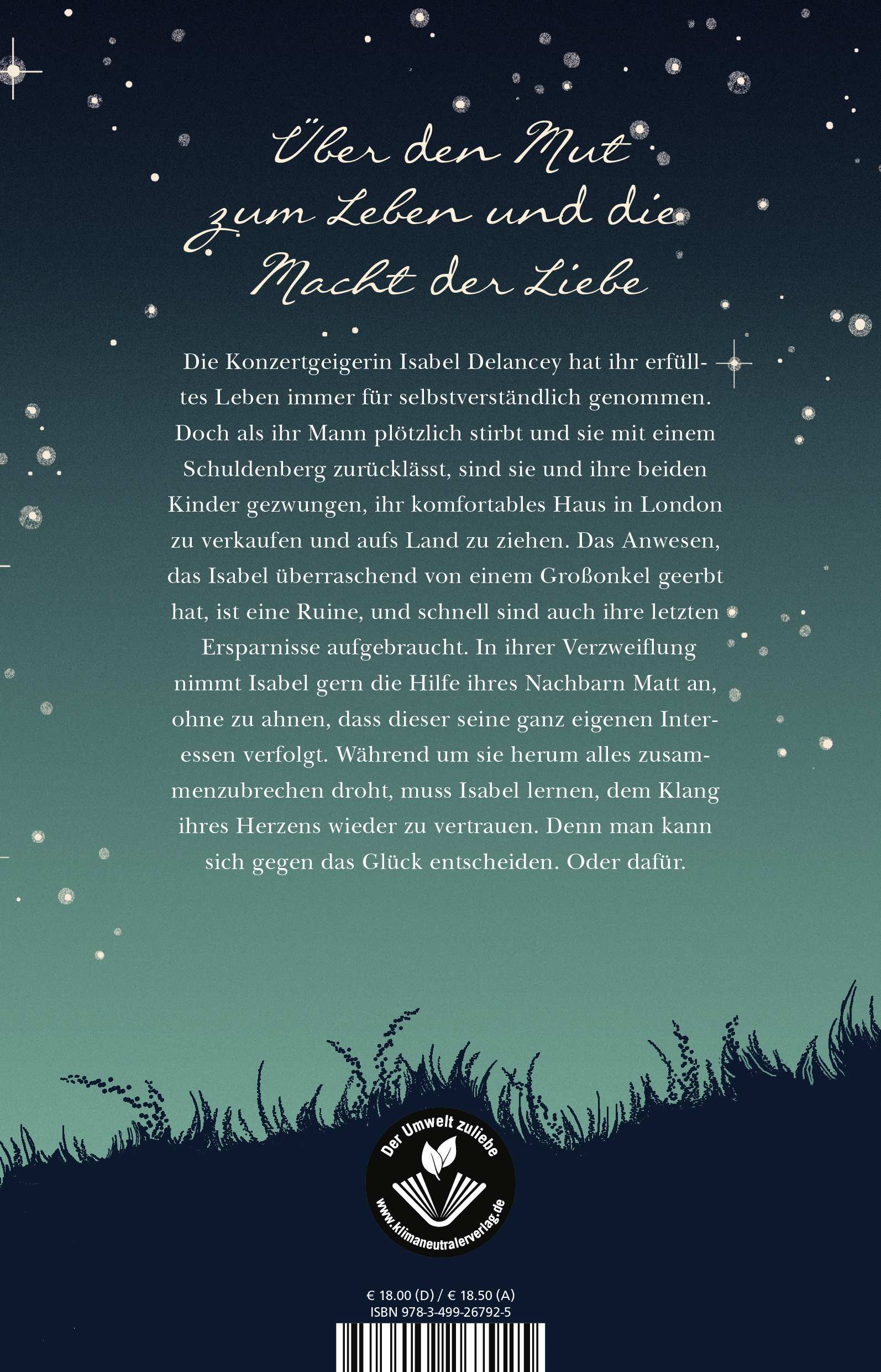 Die Konzertgeigerin Isabel Delancey hat ihr erfülltes Leben immer für selbstverständlich genommen. Doch als ihr Mann plötzlich stirbt und sie mit einem Schuldenberg zurücklässt, sind sie und ihre beiden Kinder gezwungen, ihr komfortables Haus in London zu verkaufen und aufs Land zu ziehen.
