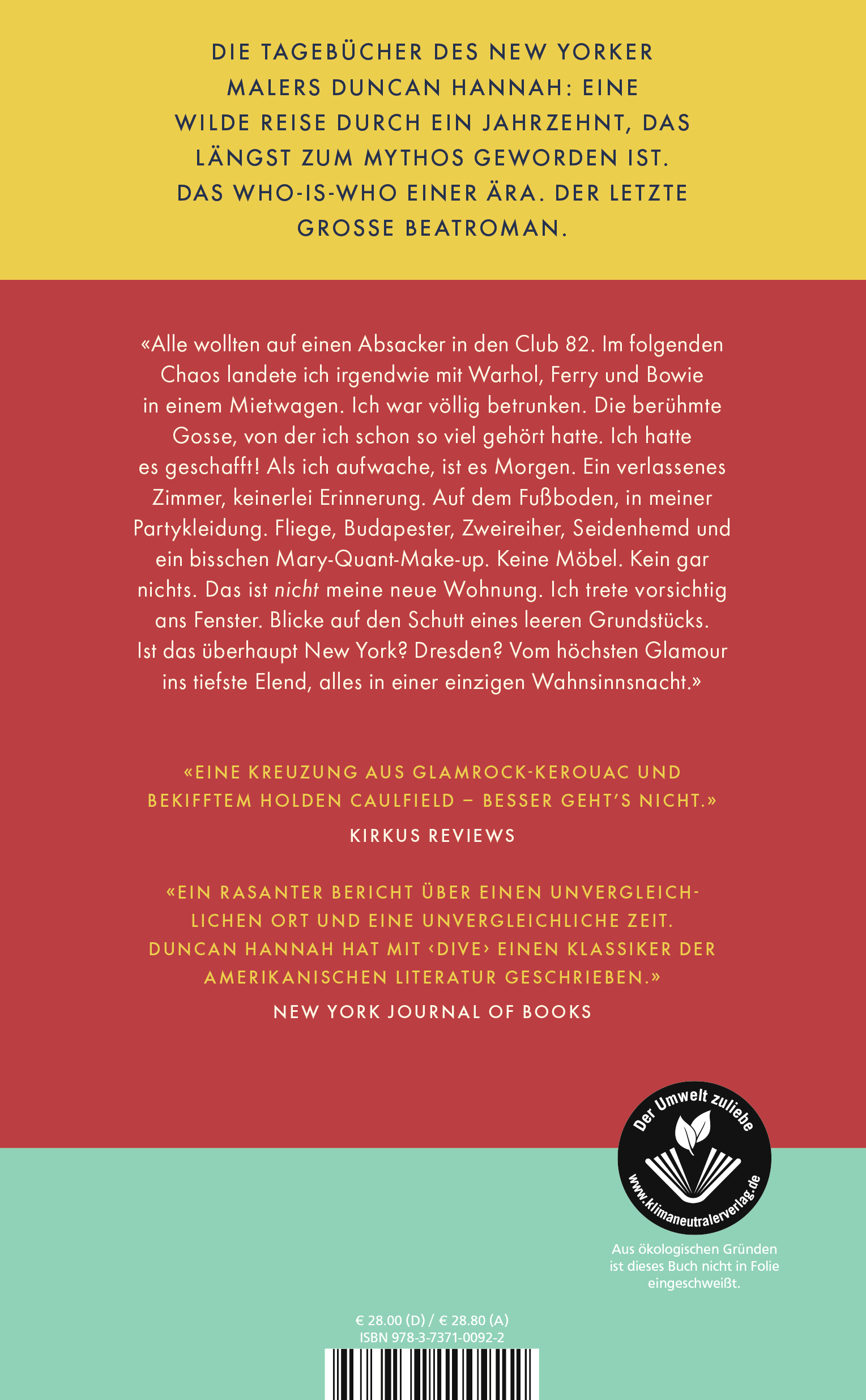 | Schlagworte | 1970er Jahre • 70er • Alkohol • Amerikanischer Realismus • Andy Warhol • Beat-Literatur • Bildende Kunst • Bindungsangst • Chronik • Dandy • Drogen • Duncan Hannah • Elektrisierend • Euphorie • Factory • Hippie-Generation • Kreativität • Lebensgefühl • Malerei • Melancholie • New York • Partygeschichten • Pop Art • Punk • Rausch • Schwermut • Siebziger Jahre • Tagebuch • Underground • Zeitdokument |