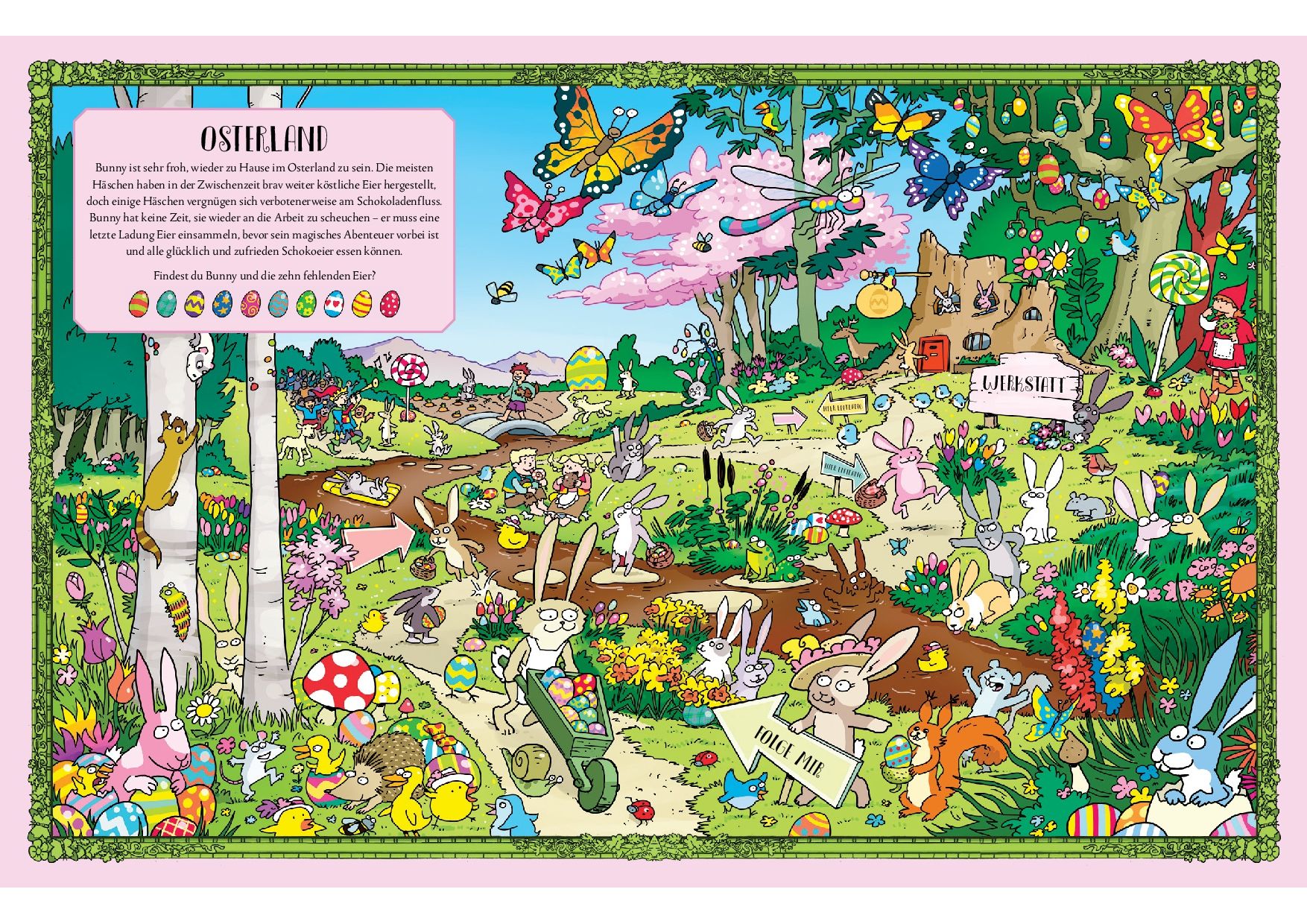 Ostern ist in Gefahr! Durch einen Unglücksfall sind fast alle Ostereier aus der Werkstatt des Osterhasen ins Märchenland gefallen. Nun muss Bunny, der Osterhase, sich schnellstens aufmachen, um alle Eier rechtzeitig wiederzufinden. Dabei benötigt er deine Hilfe!Zusammen begebt ihr euch auf eine aufregende Reise durch deine Lieblingsmärchen. In den Welten der kleinen Meerjungfrau, Schneewittchens und Aladdins musst du nicht nur Bunny und die Schokoladeneier, sondern auch ein paar niedliche Küken finden. Und das ist manchmal gar nicht so einfach.