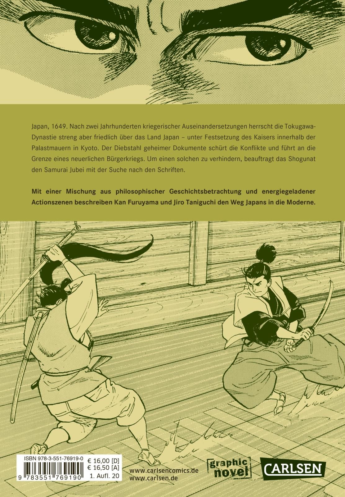 | Schlagworte | Bushid • Bushidō • Edo • Edo-Ära • Graphic Novel für Erwachsene • Graphic Novel historisch • Historisch Manga • Japan • Japanische Leserichtung • Japanische Mythologie • Japanische Samurai Bücher • Jiro Taniguchi • manga einzelband • manga für erwachsene • Samurai • Samurai Geschichte • Shogunat • Tokugawa-Dynastie |