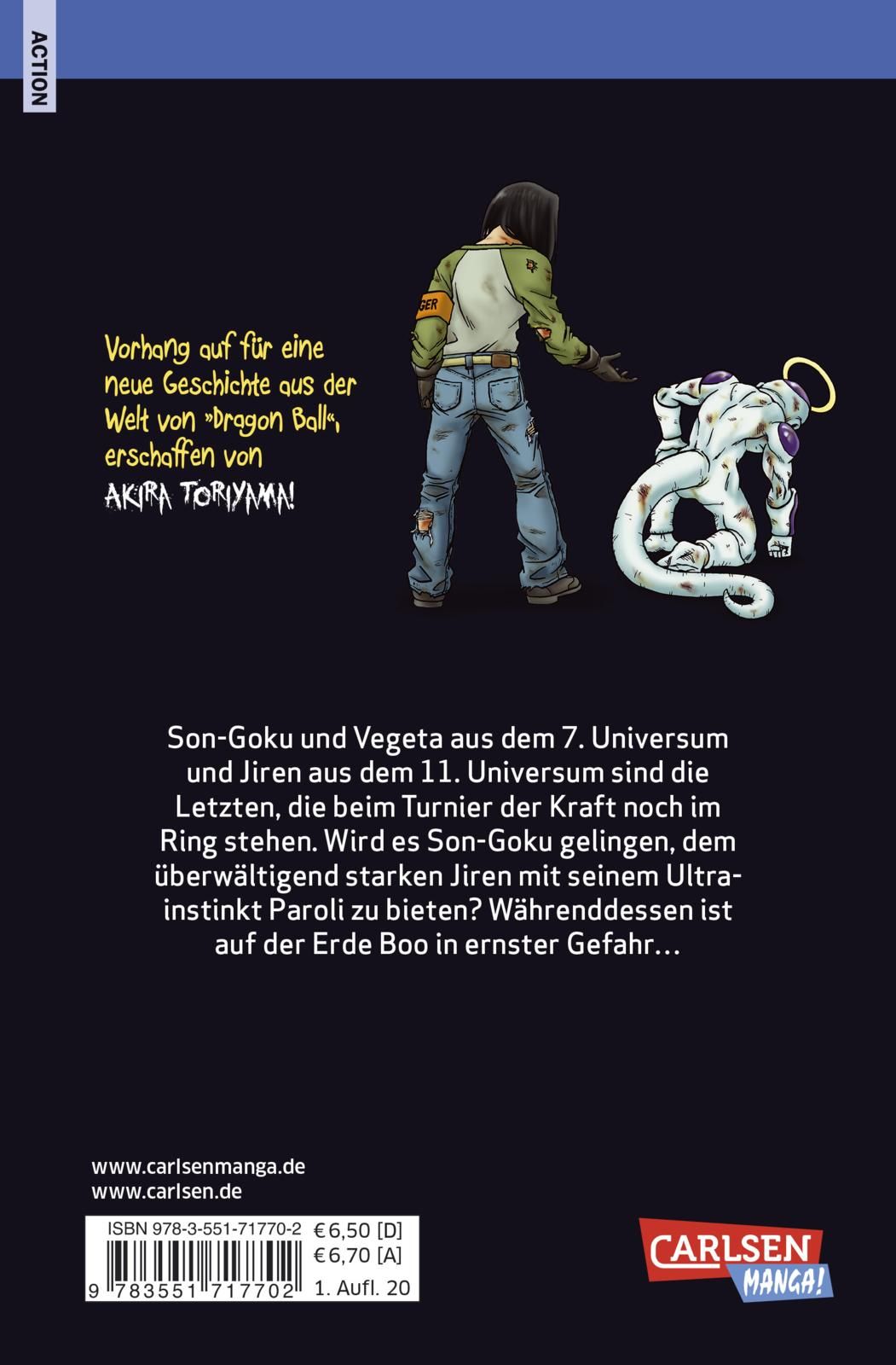 Son-Goku und Vegeta aus dem 7. Universum und Jiren aus dem 11. Universum sind die Letzten, die beim Turnier der Kraft noch im Ring stehen. Wird es Son-Goku gelingen, dem überwältigend starken Jiren mit seinem Ultrainstinkt Paroli zu bieten? Währenddessen ist auf der Erde Boo in ernster Gefahr...