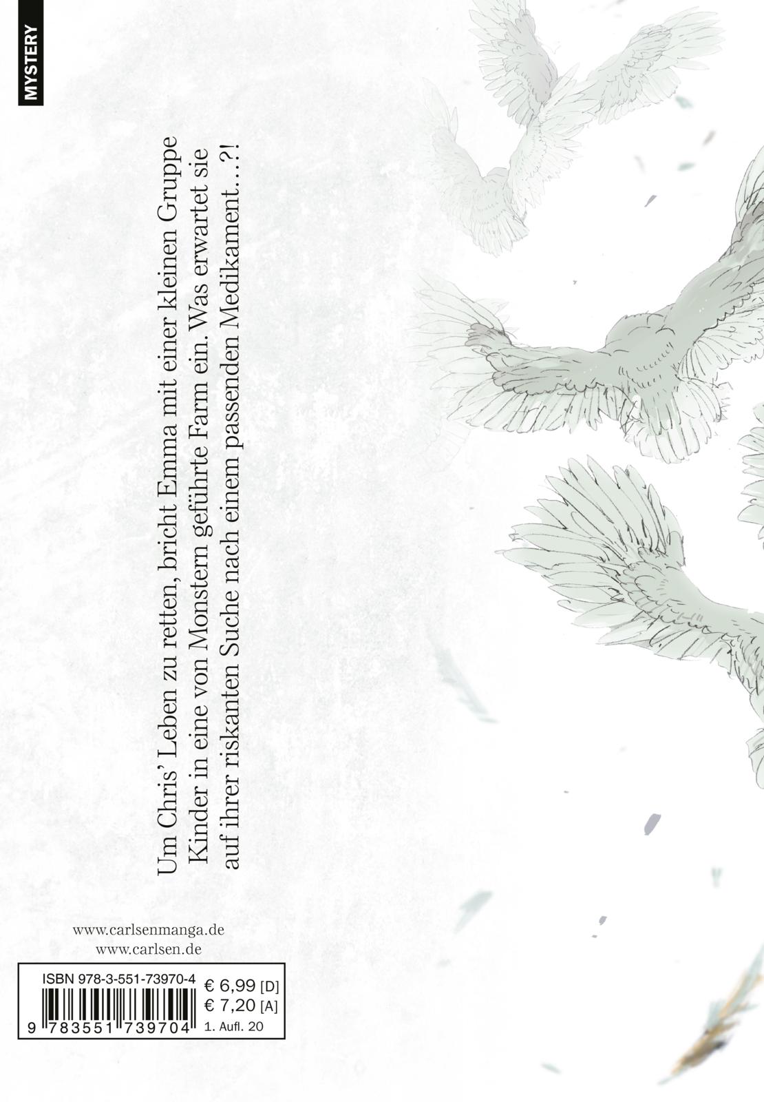 Die Frau, die sie wie ihre Mutter lieben, ist nicht ihre wirkliche Mutter, und die Kinder, mit denen sie zusammenleben, sind nicht ihre Geschwister. Denn Emma, Norman und Ray wachsen wohlbehütet in einem kleinen Waisenhaus auf. Doch eines Tages endet ihr glücklicher Alltag abrupt, als sie die schockierende Wahrheit über ihr Zuhause erfahren. Welches Schicksal wird die Kinder erwarten...?!