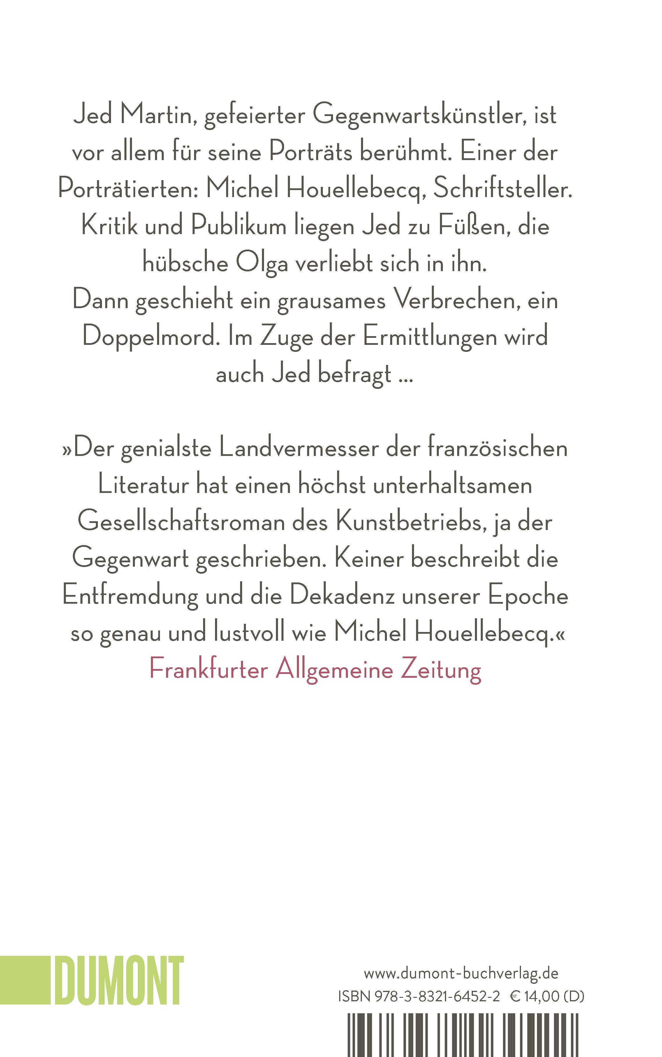 „Michel Houellebecq ist mit diesem klugen Künstlerroman ein großer Wurf der Gegenwartsliteratur gelungen: Ein hoch moralisches Buch, das die zentralen Fragen nach den Werten, Tugenden und Sünden unserer Zeit stellt und auf originelle Weise auch beantwortet.