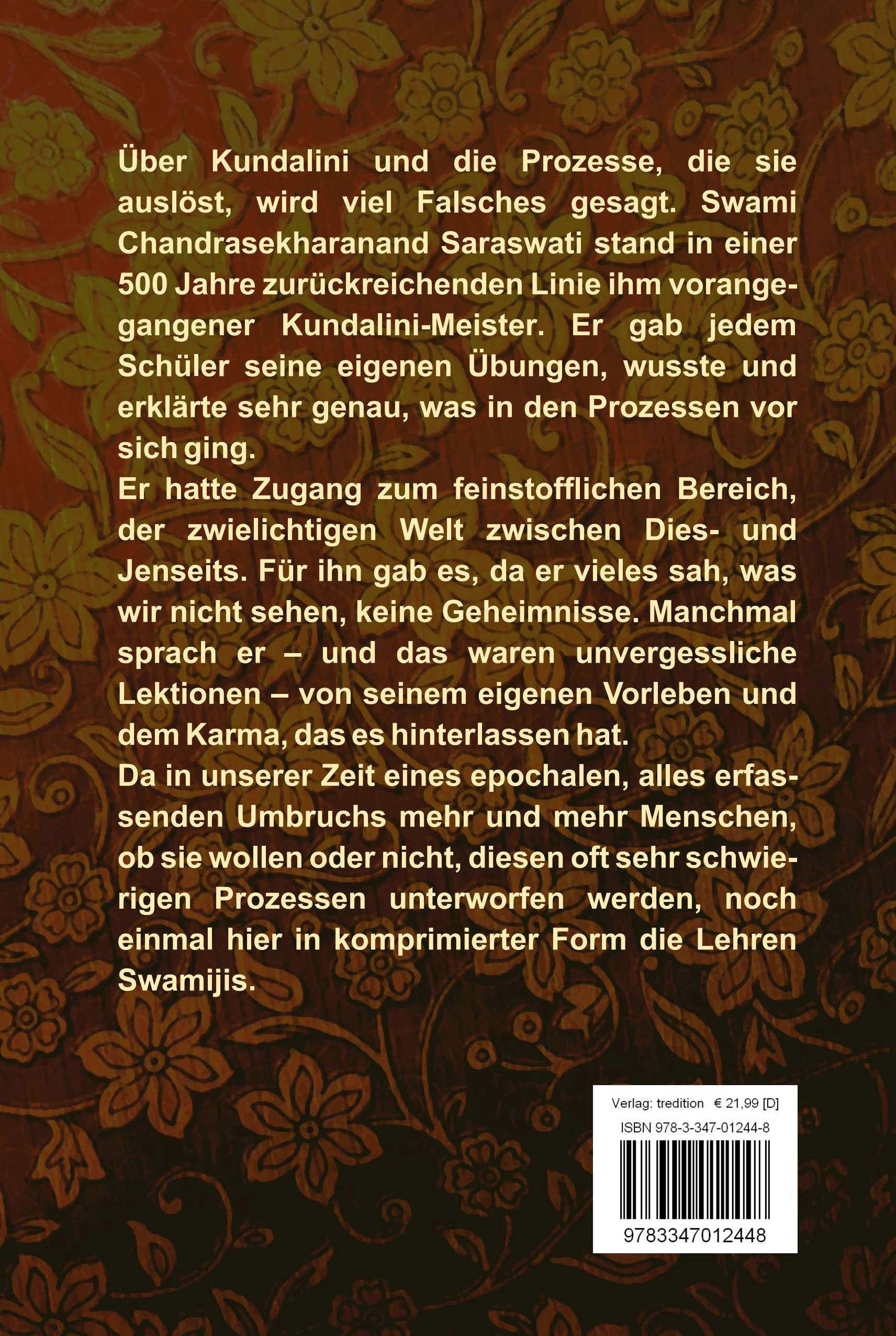 Über Kundalini und die Prozesse, die sie auslöst, wird viel Falsches gesagt. Der Meister, um den es hier geht, stand in einer 500 Jahre zurückreichenden Linie ihm vorangegangener Kundalini-Meister. Er war schlicht und sachlich, gab jedem Schüler seine eigenen Übungen, wusste und erklärte sehr genau, was in ihren Prozessen vor sich ging. Er hatte Zugang zum feinstofflichen Bereich, der zwielichtigen Welt zwischen Dies- und Jenseits. Für ihn gab es, da er vieles sah, was wir nicht sehen, keine Geheimnisse. Hin und wieder sprach er - und das waren unvergessliche Lektionen - von seinem eigenen Vorleben und dem Karma, dass es hinterlassen hat. Und manchmal sagte Swamiji, so nannten ihn seine Schüler, nicht er sei der Meister, sondern Kundalini Shakti, die subtilste und stärkste aller Kräfte - weitere Informationen über Kundalini, den Meister und das Buch aus einer siebenseitigen Besprechung in AUFGANG 17, Jahrbuch für Denken, Dichten, Kunst, Augsburg 2020, in Presseberichte unter: https://tredition.de/autoren/kiu-eckstein-21110/