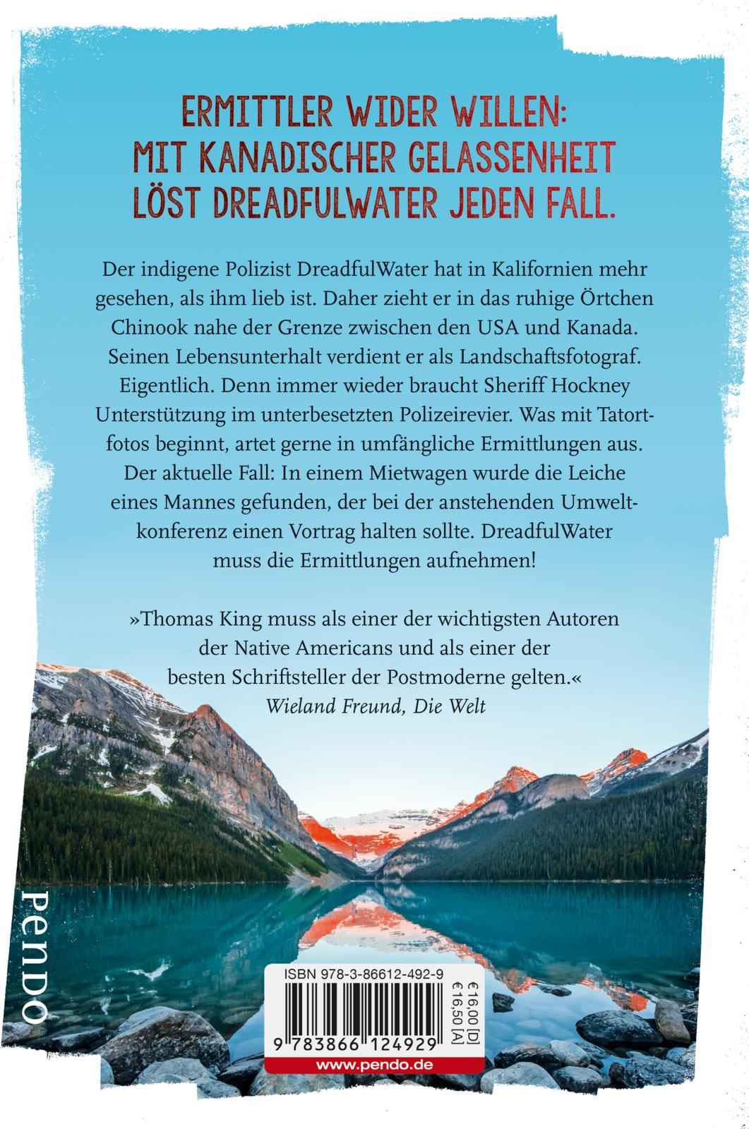 DreadfulWater ist eine unvergessliche Variante des Ermittlers wider Willen: mit kanadischer Gelassenheit löst er jeden Fall - Originelle Charaktere, trockener Humor und ein unvergleichlicher Detektiv. »Der in Kanada hoch angesehene Autor Thomas King hat in seinem Kriminalroman der Figur des Privatdetektivs wider Willen eine eigenwillige reizvolle Variante hinzugefügt.« Tobias Gohlis, DIE ZEIT