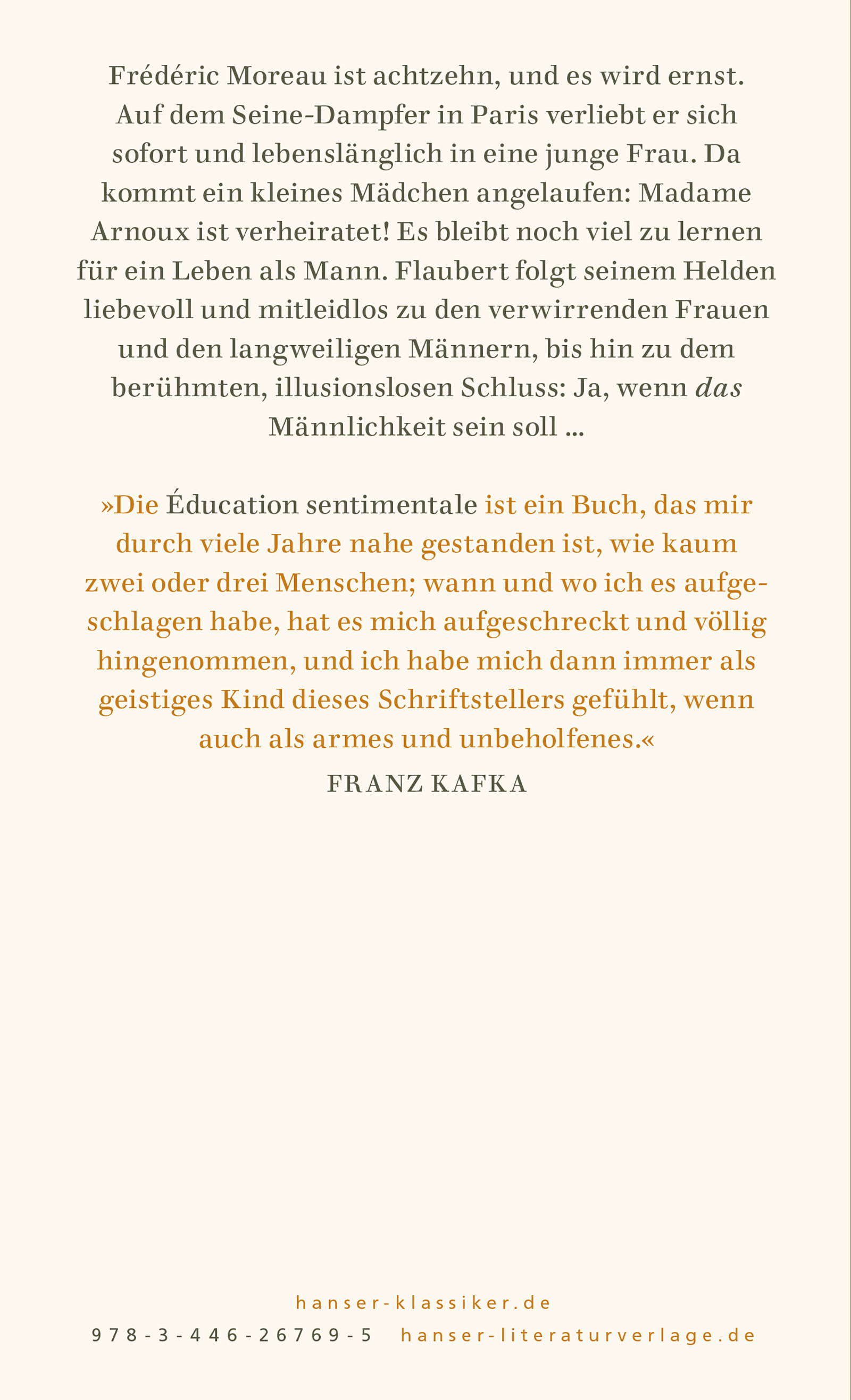 | Schlagworte | 1848 • Bildungsroman • Education sentimentale • Erziehung der Gefühle • Erziehung der Gefühle • Erziehung des Gefühls • Erziehung des Gefühls • Erziehung des Herzens • Flaubert • Frauen • Geschichte • Geschichte eines jungen Mannes • Gesellschaftsroman • Jugend • Kindheit • Lehrjahre des Herzens • Liebe • Madame Bovary • Männer • Männer • Neuübersetzung • Neuübersetzung • Paris • Politik • Revolution • Schule der Empfindsamkeit • Weiblichkeit |