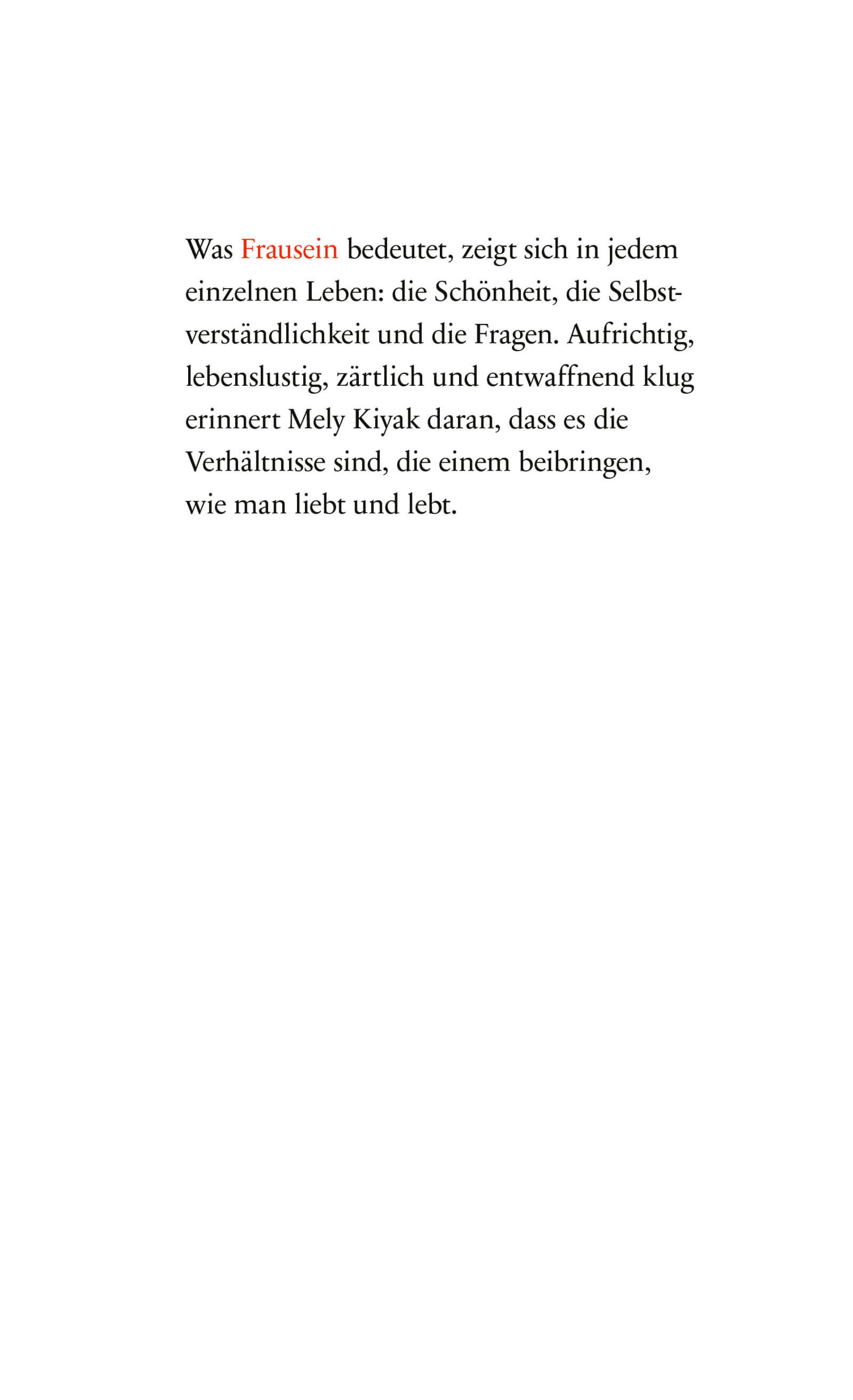 Aufrichtig, lebenslustig, zärtlich und entwaffnend klug erinnert Mely Kiyak daran, dass es die Verhältnisse sind, die einem beibringen, wie man liebt und lebt.
