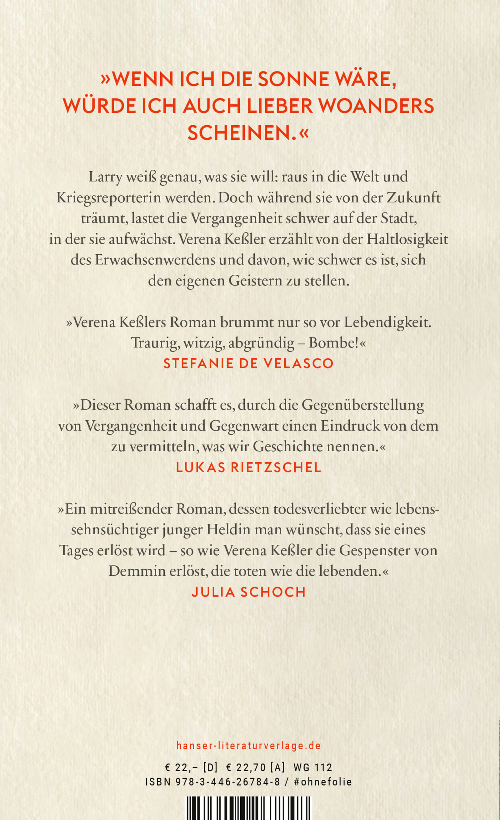 In Demmin fand der größte Massenselbstmord deutscher Geschichte statt – ein Thema, das bisher noch nie literarisch verarbeitet wurde. Ein erfrischendes Debüt über die Haltlosigkeit des Erwachsenwerdens und die Frage, wie sehr die Geschichte unsere Gegenwart bestimmt. Mit Leichtigkeit und Witz erzählt Verena Keßler von Trauer und Einsamkeit, von Freundschaft und der ersten Liebe. Ein Roman über die Sprachlosigkeit zwischen den Generationen und die Möglichkeit, sie zu überwinden. "Verena Keßlers Roman über eine kollektive Tragödie schafft es, durch die Gegenüberstellung von Vergangenheit und Gegenwart einen Eindruck davon zu vermitteln, was wir Geschichte nennen." - Lukas Rietzschel