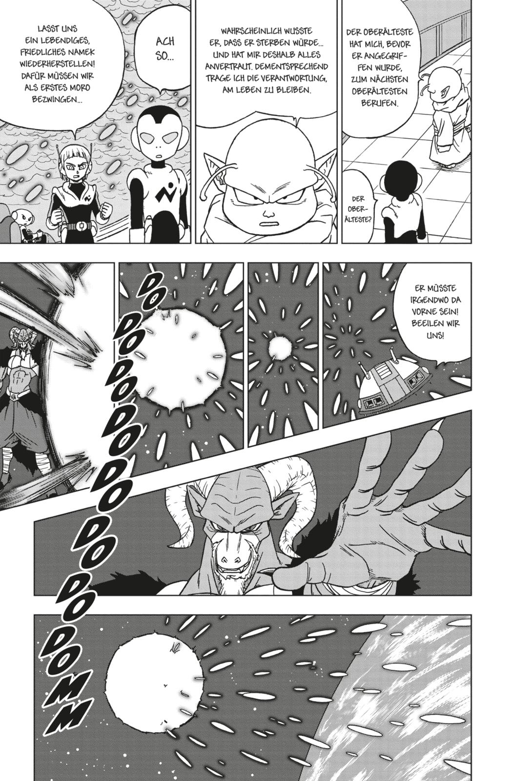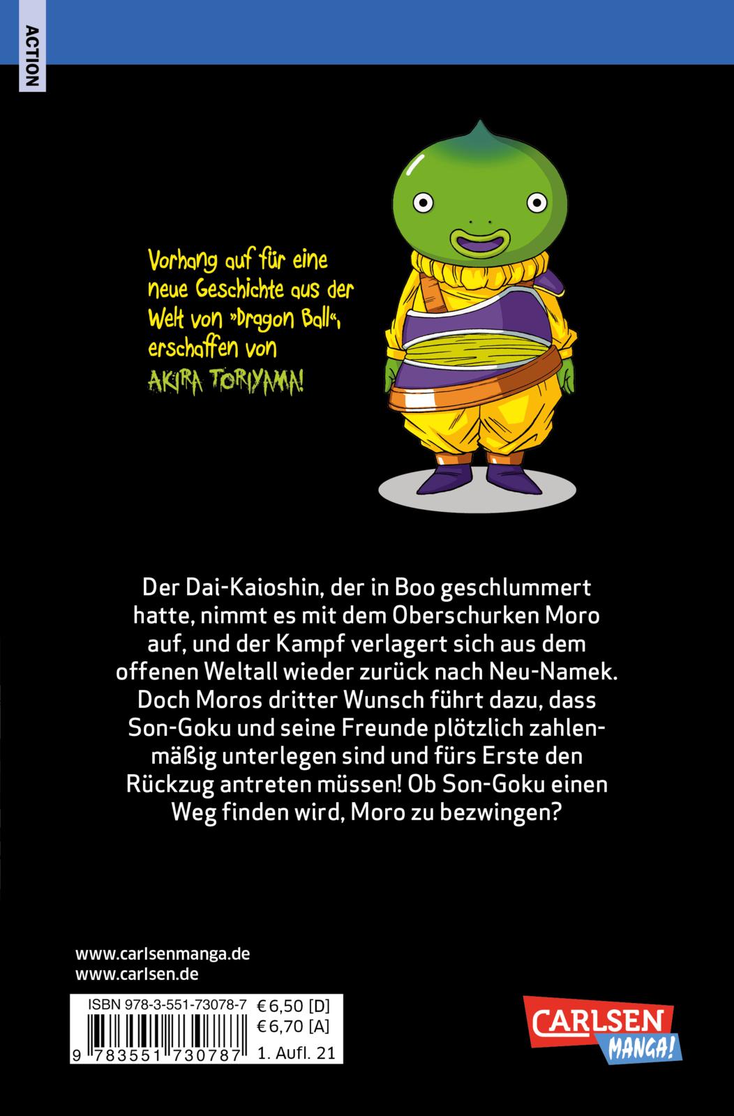 Der Dai-Kaioshin, der in Boo geschlummert hatte, nimmt es mit dem Oberschurken Moro auf, und der Kampf verlagert sich aus dem offenen Weltall wieder zurück nach Neu-Namek. Doch Moros dritter Wunsch führt dazu, dass Son-Goku und seine Freunde plötzlich zahlenmäßig unterlegen sind und fürs Erste den Rückzug antreten müssen! Ob Son-Goku einen Weg finden wird, Moro zu bezwingen?