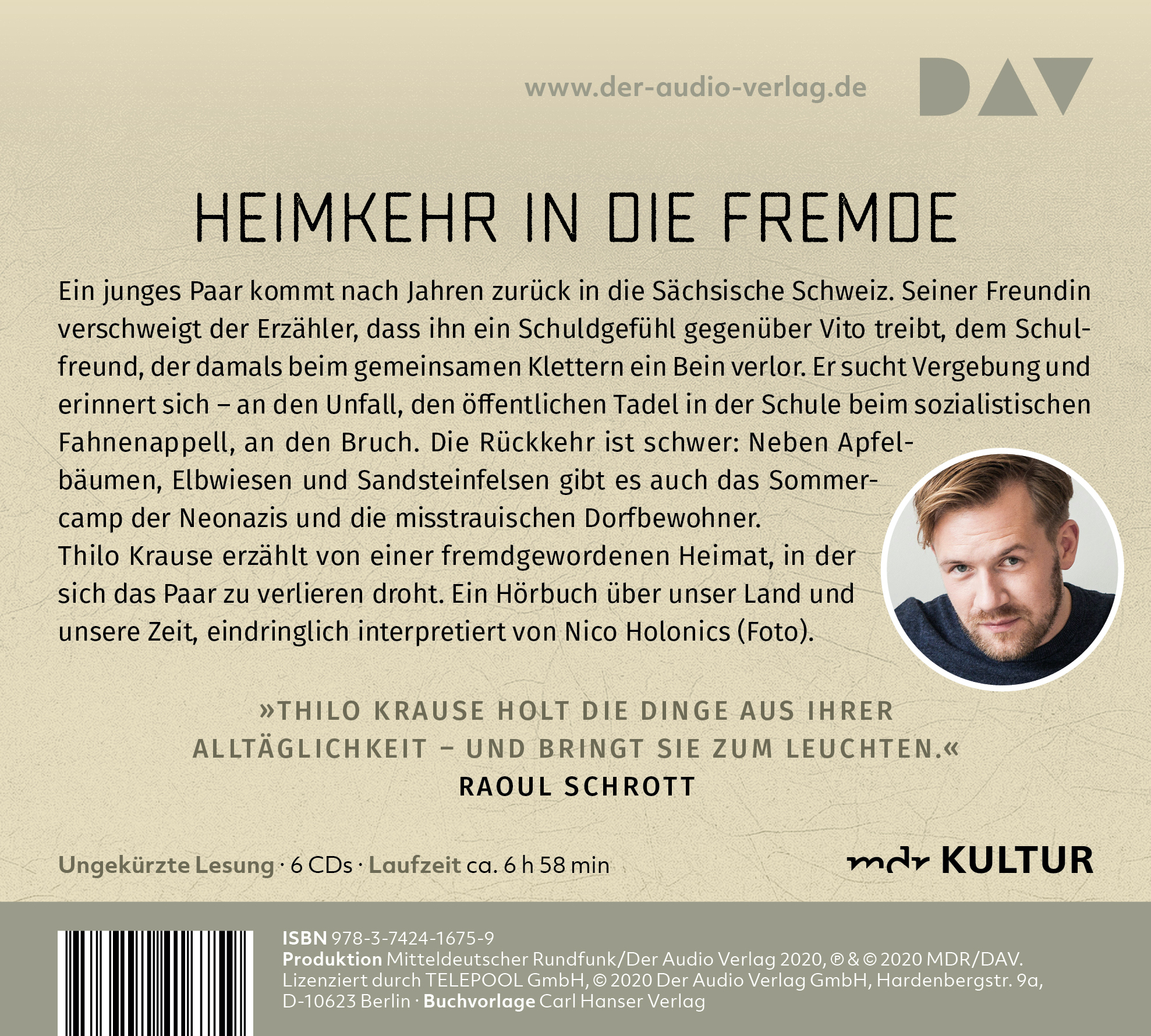 Er sucht Vergebung und erinnert sich – an den Unfall, den öffentlichen Tadel in der Schule beim sozialistischen Fahnenappell, an den Bruch. Die Rückkehr ist schwer: Neben Apfelbäumen, Elbwiesen und Sandsteinfelsen gibt es auch das Sommercamp der Neonazis und die misstrauischen Dorfbewohner.