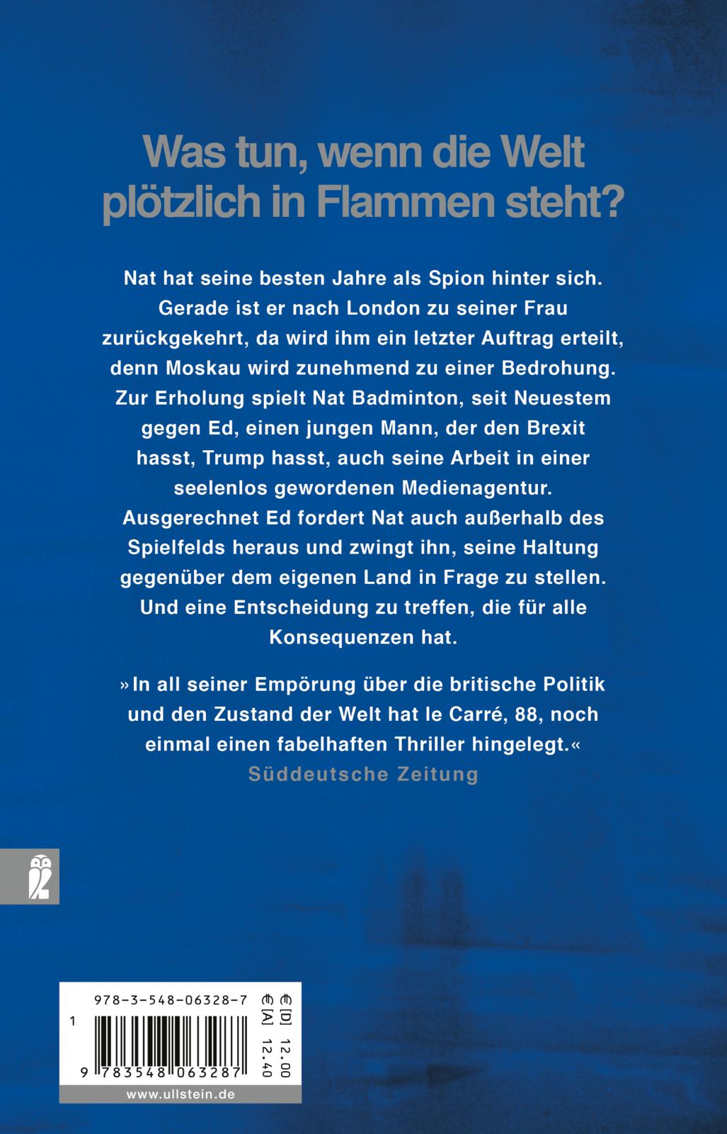 Nat hat seine besten Jahre als Spion hinter sich. Gerade ist er nach London zu seiner Frau zurückgekehrt, da wird ihm ein letzter Auftrag erteilt, denn Moskau wird zunehmend zu einer Bedrohung. Zur Erholung spielt Nat Badminton, seit Neuestem gegen Ed, einen jungen Mann, der den Brexit hasst, Trump hasst, auch seine Arbeit in einer seelenlos gewordenen Medienagentur. Ausgerechnet Ed fordert Nat auch außerhalb des Spielfelds heraus und zwingt ihn, seine Haltung gegenüber dem eigenen Land in Frage zu stellen. Und eine Entscheidung zu treffen, die für alle Konsequenzen hat.