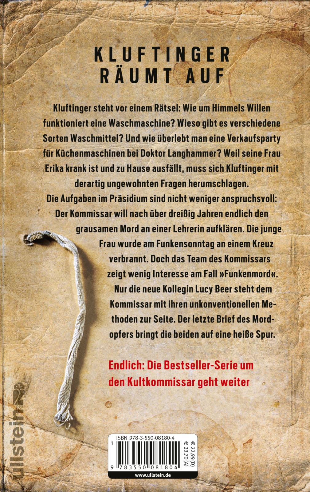 Der Kommissar ist fest entschlossen, den Fall „Funkenmord“ wieder aufzurollen, doch seine Kollegen zeigen wenig Interesse an einem Cold Case. Nur die neue Mitarbeiterin Lucy Beer unterstützt ihn bei der Suche nach dem wahren Täter. Kluftinger ist beeindruckt von der selbstbewussten jungen Frau, die frischen Wind in seine Abteilung bringt.