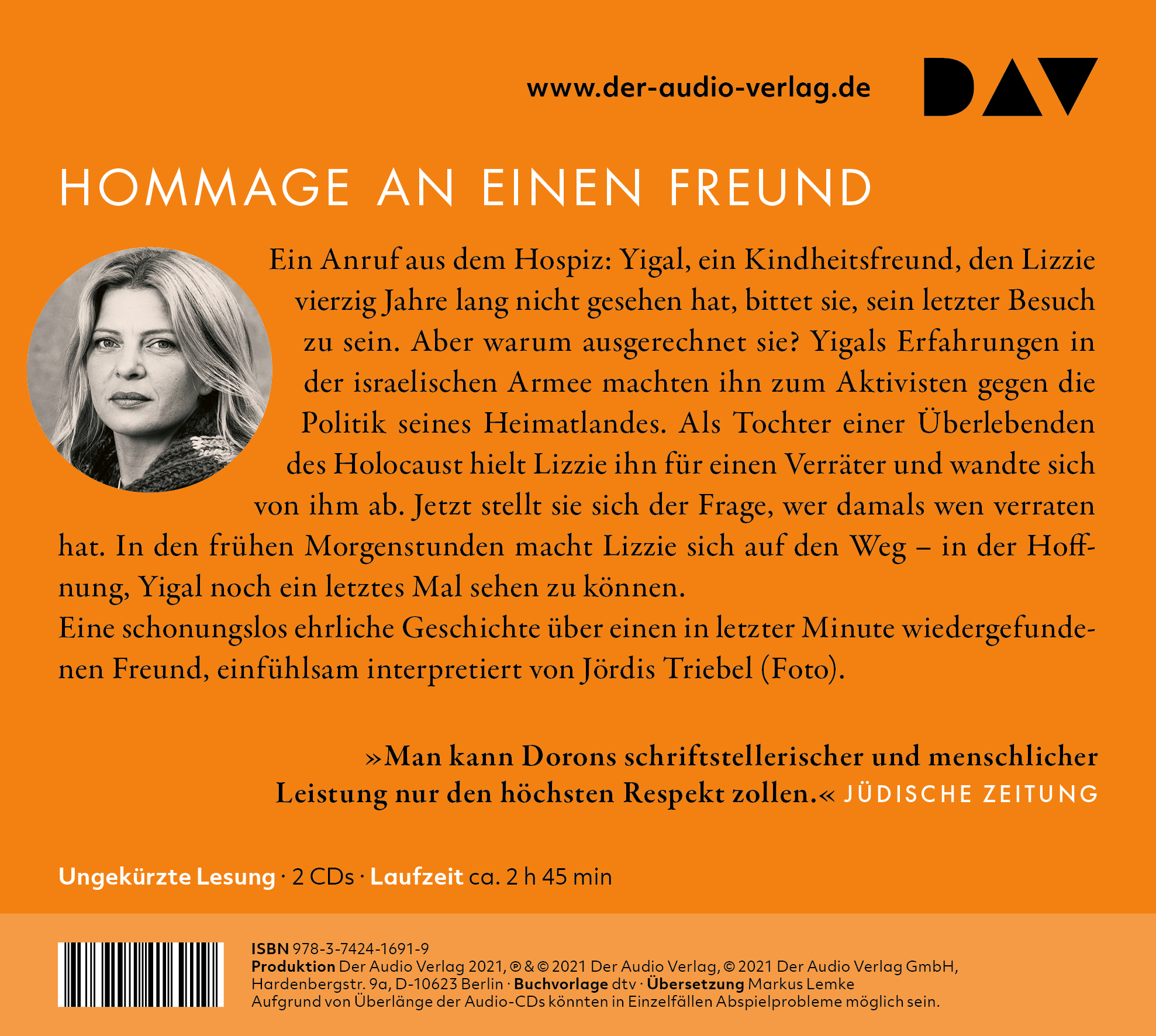 Aber warum ausgerechnet sie? Yigals Erfahrungen in der israelischen Armee machten ihn zum Aktivisten gegen die Politik seines Heimatlandes. Als Tochter einer Holocaust-Überlebenden hielt Lizzie ihn für einen Verräter und wandte sich von ihm ab. Jetzt stellt sie sich der Frage, wer damals wen verraten hat.