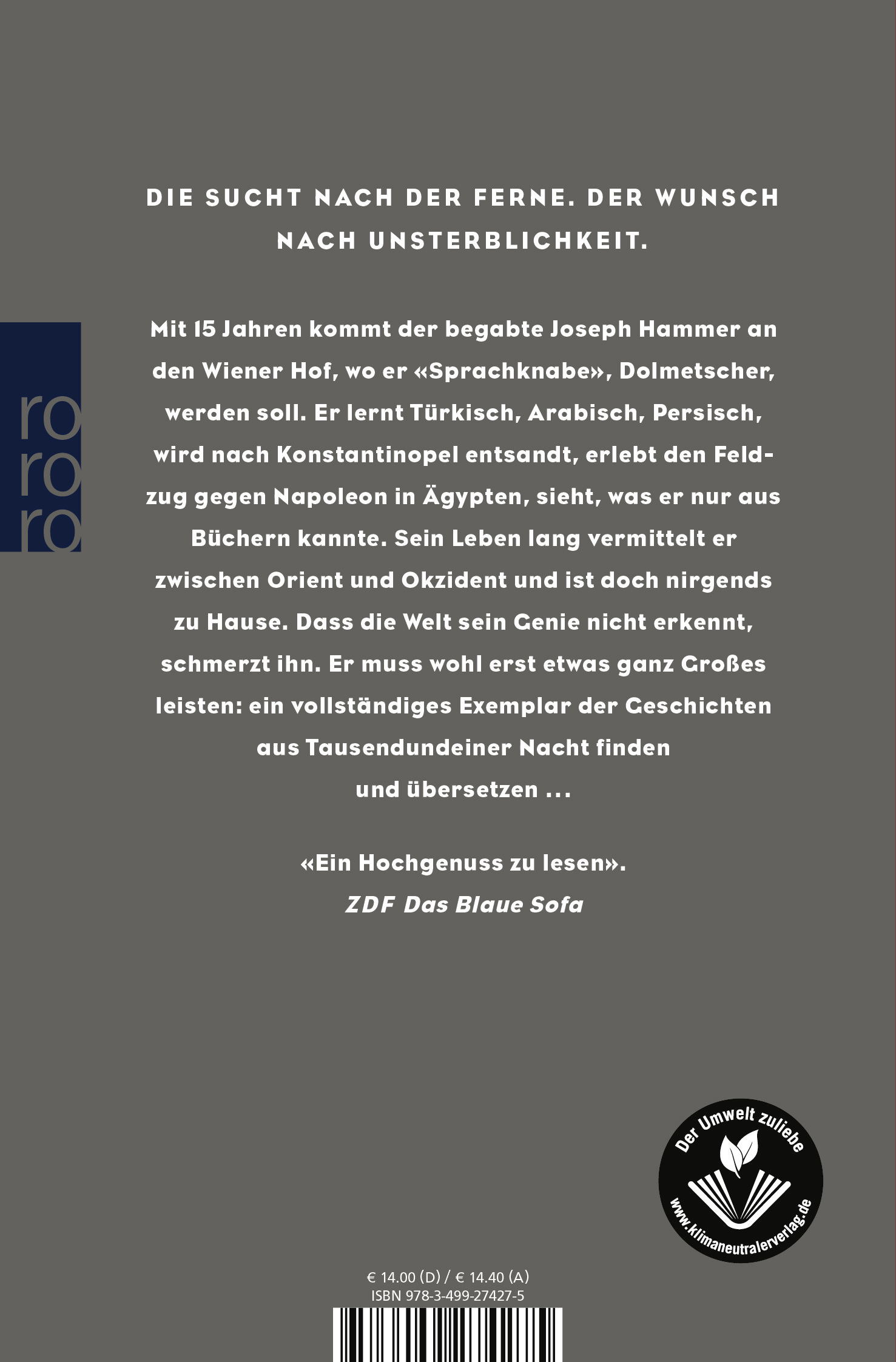 | Schlagworte | Dolmetscher • Goethe • Historischer Roman • Joseph von Hammer-Purgstall • Konstantinopel • Orient • Orientalismus • Österreich-Ungarn • Sprachknabe • Tausendundeine Nacht • Übersetzung • Wien |
