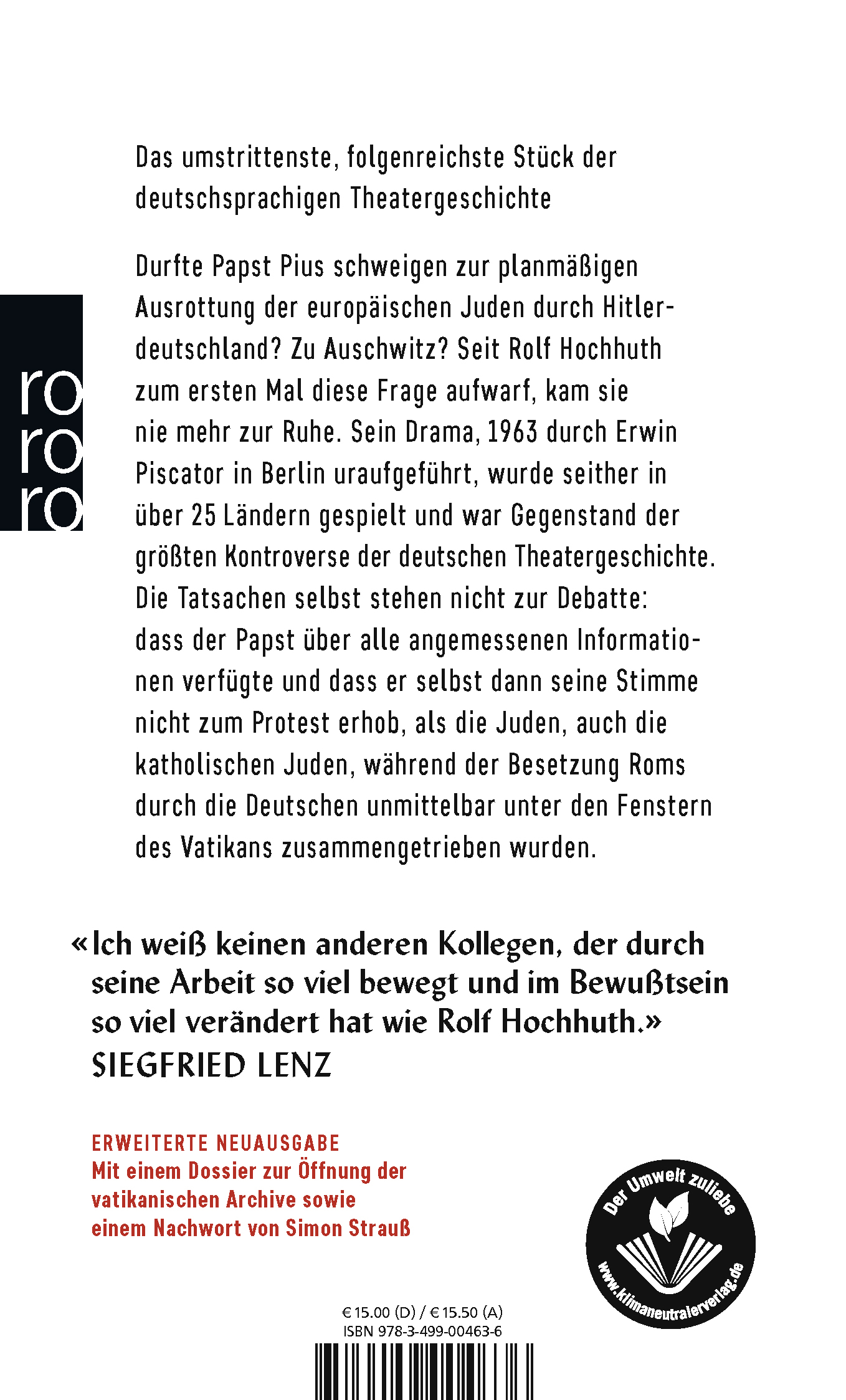 | Schlagworte | Antisemitismus • Auschwitz • Deportation • Holocaust • Holocaustliteratur • Jude/Jüdin • Judentum • Judenverfolgung • Kirche • Klassiker • Nationalsozialismus • Papst • Rolf Hochhuth • Vatikan |