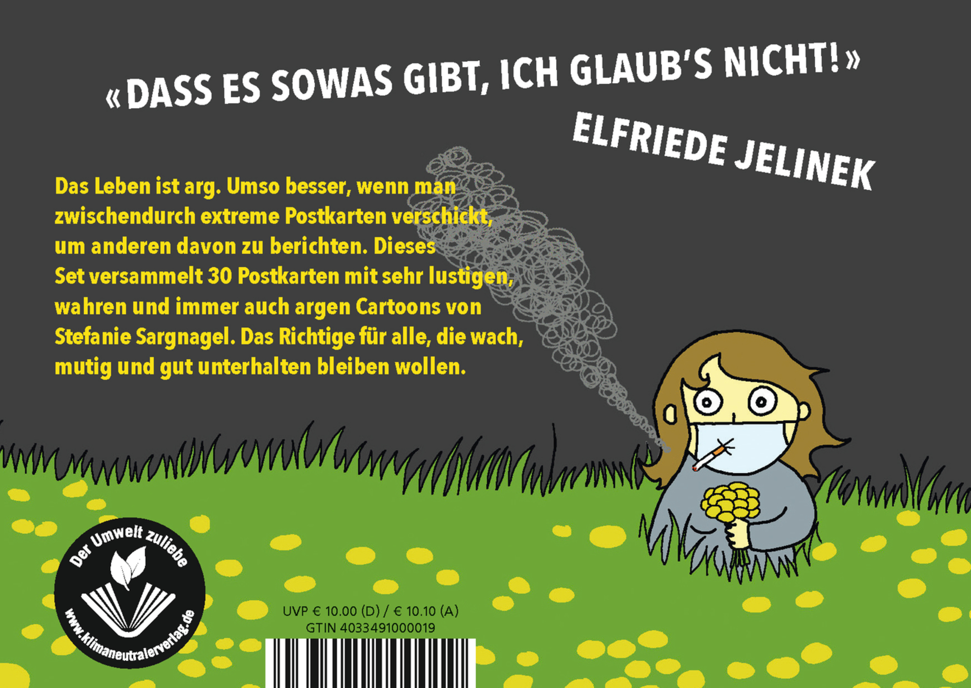 Das Leben ist arg. Umso besser, wenn man zwischendurch extreme Postkarten verschickt, um anderen davon zu berichten. Dieses Postkartenset versammelt 20 Postkarten mit sehr lustigen, wahren und immer auch argen Cartoons von Stefanie Sargnagel. Das Richtige für alle, die wach, mutig und gut unterhalten bleiben wollen.