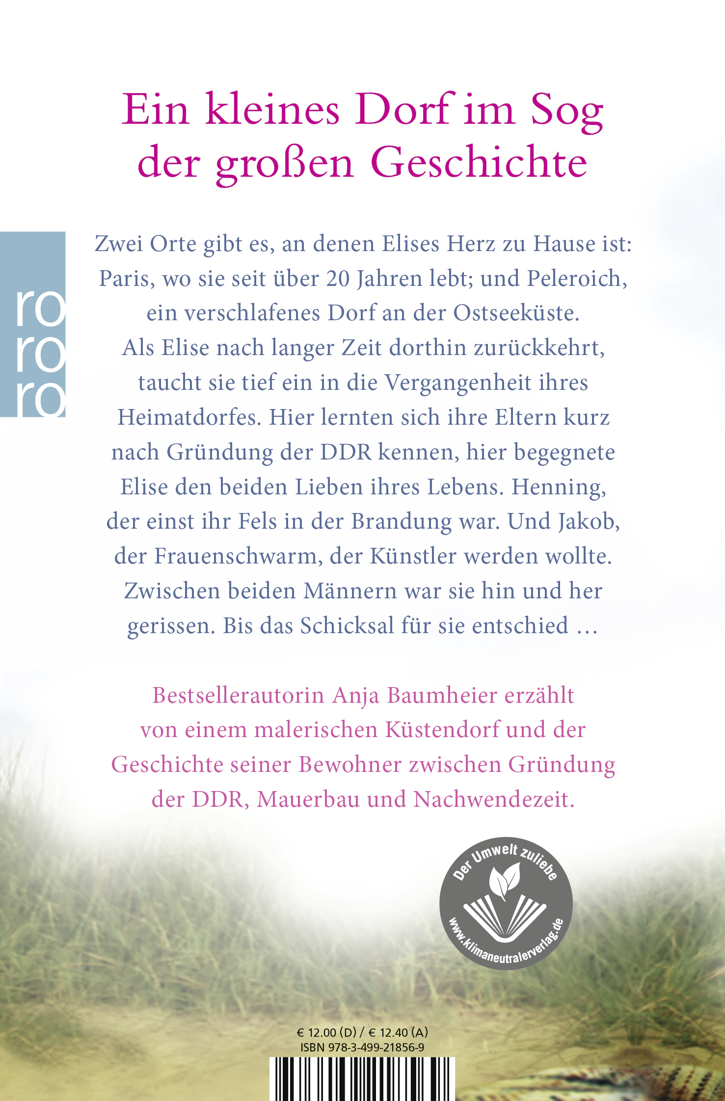 Zwei Orte gibt es, die für Elise Heimat bedeuten: Paris, wo sie seit über 20 Jahren ihre Boutique führt; und Peleroich, ein verschlafenes Dorf an der mecklenburgischen Ostseeküste. Hier wächst sie in den 60er Jahren auf, hier lernt sie Henning und Jakob kennen, die beiden Lieben ihres Lebens. Henning, der Fels in der Brandung, den sie seit Kindertagen kennt, Jakob, der Frauenschwarm, der davon träumt, Künstler zu werden. Eine fatale Dreiecksbeziehung voller Geheimnisse - bis Jakob eines Tages spurlos verschwindet.