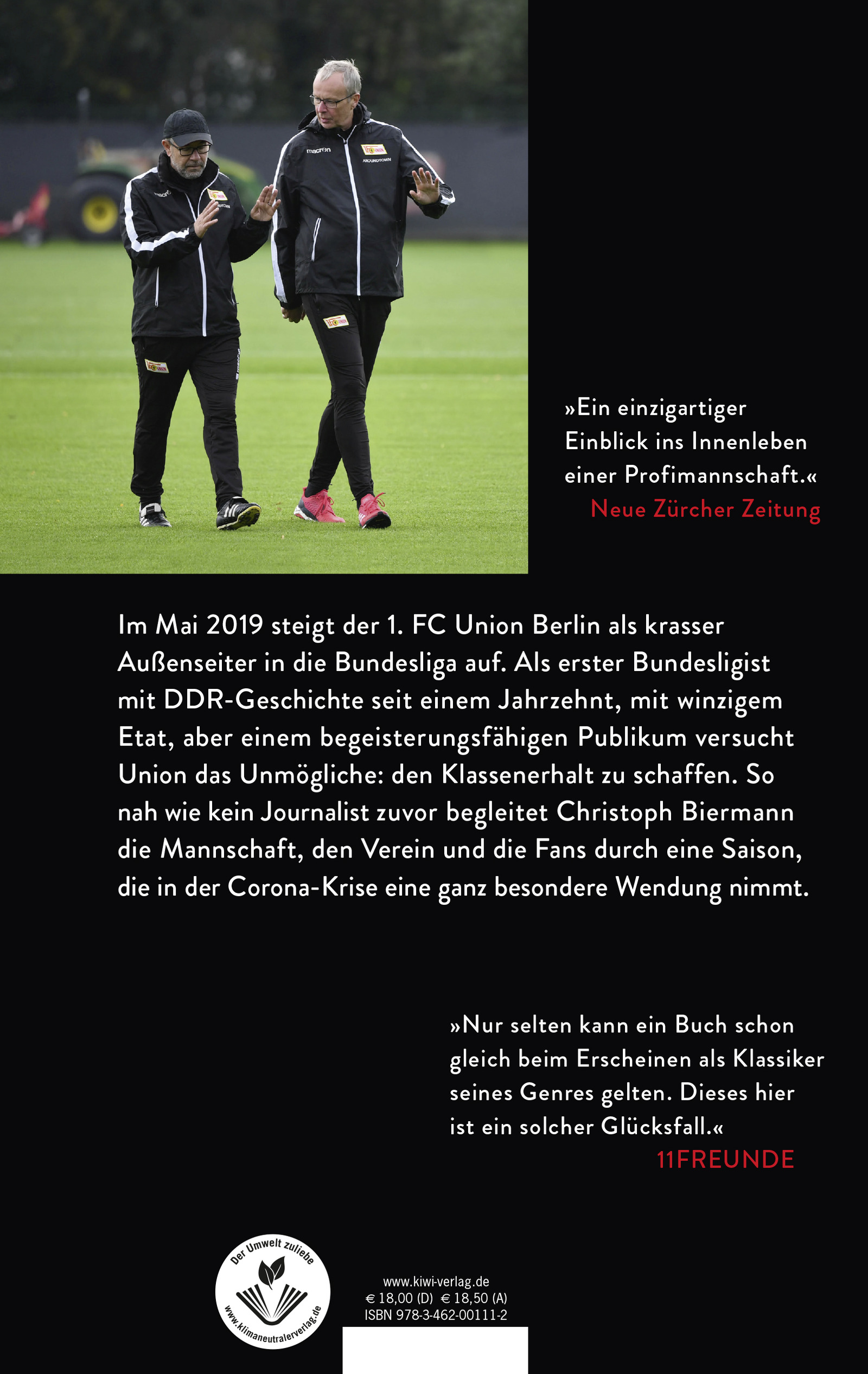 | Schlagworte | 11 Freunde • 1. FC Union • Alte Försterei • Aufstieg • Berliner Traditionsverein • Berlin Köpenick • Bundesliga • Corona Bundesliga • DDR Fußball Berlin • DDR Verein • Eiserne Union • Erste Bundesliga Saison • Fan Kultur Fußball • Fußballbuch des Jahres • Fußball Corona Krise • Fußball EM 2020 • Fußballmannschaft • Fußball Mannschaft • Fußball Matrix • Fußballreportage Traditionsverein Bundesliga • Hinter den Kulissen • Identität Fußballverein • Insider-Informationen • Matchplan • Max Kruse • Ostdeutsche Fußballkultur • Profi Fußball Alltag • Reportage • Sportjournalist Insider • Stadion An der Alten Försterei • Trainingslager Bundesliga • Union • Union Berlin • Union Berlin Tagebuch • Union Fans Köpenick • Urs Fischer • Urs Fischer Trainer • Vereinsführung Bundesliga • Vereinsführung Profifußball • Vereinsgeschichte Bundesliga |