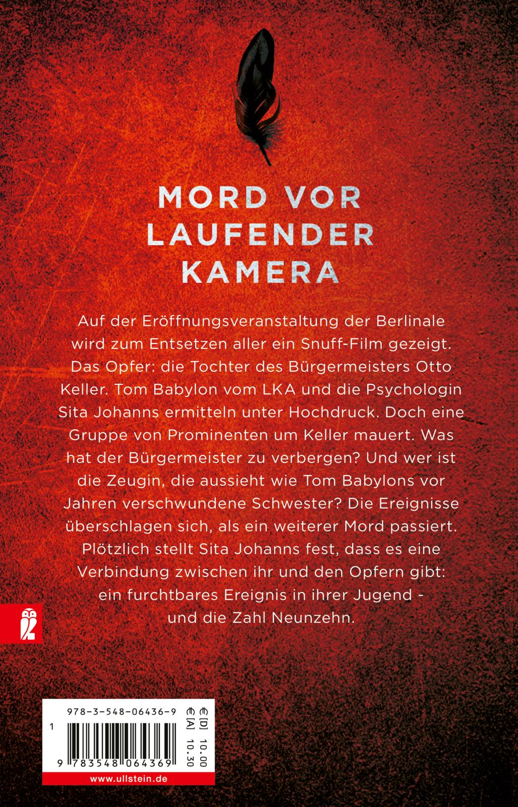 Tom Babylon vom LKA und die Psychologin Sita Johanns ermitteln unter Hochdruck. Doch eine Gruppe von Prominenten um Keller mauert. Was hat der Bürgermeister zu verbergen? Und wer ist die Zeugin, die aussieht wie Tom Babylons vor Jahren verschwundene Schwester? Die Ereignisse überschlagen sich, als ein weiterer Mord passiert. Plötzlich stellt Sita Johanns fest, es gibt eine Verbindung zwischen ihr und den Opfern: Ein furchtbares Ereignis in ihrer Jugend - und die Zahl Neunzehn.