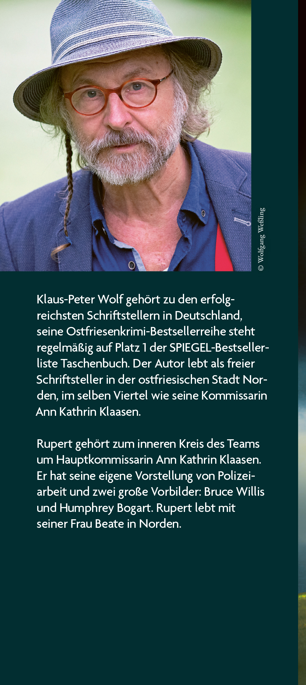 Klaus-Peter Wolf, 1954 in Gelsenkirchen geboren, lebt als freier Schriftsteller in der ostfriesischen Stadt Norden, im selben Viertel wie seine Kommissarin Ann Kathrin Klaasen. Wie sie ist er nach langen Jahren im Ruhrgebiet, im Westerwald und in Köln an die Küste gezogen und Wahl-Ostfriese geworden. Seine Bücher und Filme wurden mit zahlreichen Preisen ausgezeichnet. Bislang sind seine Bücher in 26 Sprachen übersetzt und über dreizehn Millionen Mal verkauft worden. Mehr als 60 seiner Drehbücher wurden verfilmt, darunter viele für »Tatort« und »Polizeiruf 110«. Der Autor ist Mitglied im PEN-Zentrum Deutschland.Die Romane seiner Serie mit Hauptkommissarin Ann Kathrin Klaasen stehen regelmäßig mehrere Wochen auf Platz 1 der Spiegel-Bestsellerliste, derzeit werden einige Bücher der Serie prominent fürs ZDF verfilmt und begeistern Millionen von Zuschauern.