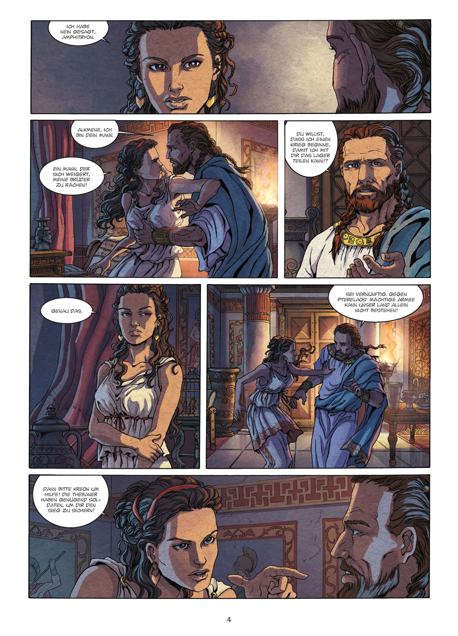 Vom Sitz der Götter auf dem Berg Olymp aus erkennt Zeus, dass er einen Vertreter seiner Macht zu den Menschen schicken muss, um den Frieden zwischen ihnen zu wahren. Doch wer ist dieser Aufgabe gewachsen? Auf Anraten des Götterboten Hermes beschließte er, mit einer Sterblichen ein Kind zu zeugen: einen Halbgott. Seine Wahl fällt auf Alkmene, die Königin von Theben und Nachfahrin des Perseus. Ihr gemeinsamer Sohn Herakles wird der größte aller Krieger sein, gesegnet mit unendlicher Kraft und dem Mut eines Löwen. Doch die Eifersucht der Göttermutter Hera wirft einen Schatten auf das Schicksal dieses Sohnes der Vorhersehung...Der Mythos des Herakles und seiner 12 Arbeiten, seines tragischen Schicksals und seines Aufstiegs in den Olymp, ist vielleicht die bekannteste aller antiken Sagen und hat dank seiner Mischung aus Action, Abenteuer und Dramatik auch in unserer modernen Welt nichts an Faszinationskraft eingebüßt.Große Epen, mächtige Götter, phantastische Ungeheuer, außergewöhnliche Helden - die griechische Mythologie ist ein unerschöpflicher Quell wundervoller und aufregender Abenteuer. Auch heute können wir aus ihr lernen, und darum bildet sie immer noch ein Herzstück der humanistischen Bildung auf der ganzen Welt. »Mythen der Antike« lässt uns eine Reihe der wichtigsten Sagen als Comics neu entdecken. Unter der Leitung von Luc Ferry, dem ehemaligen französischen Bildungsminister, wurden die Originaltexte mit größter Sorgfalt adaptiert und graphisch brillant umgesetzt. Jeder Band präsentiert einen kompletten Mythos, dessen philosophisches und kulturelles Erbe in einem umfassenden Ergänzungsteil erläutert wird.