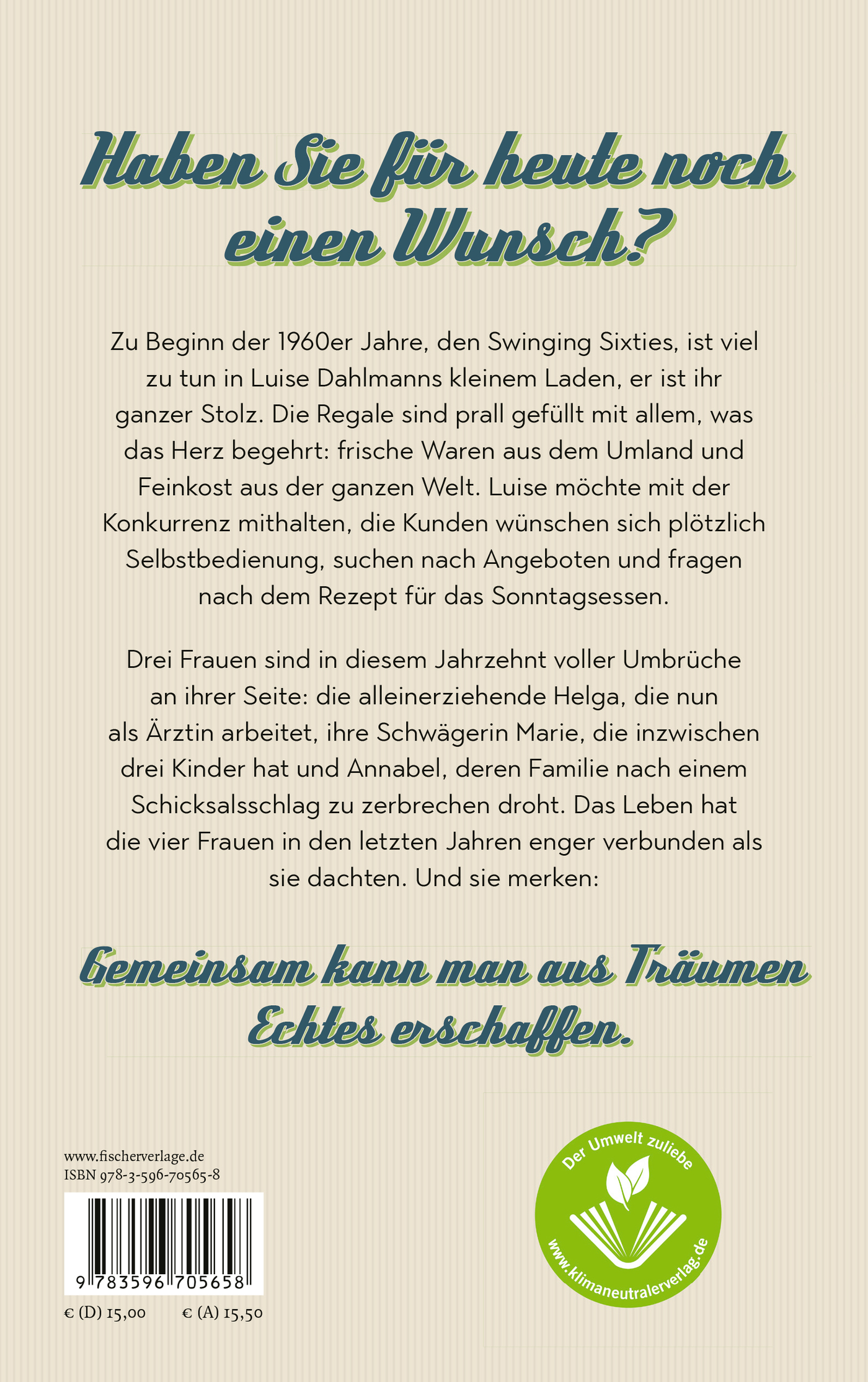 Drei Frauen sind in diesem Jahrzehnt voller Umbrüche an ihrer Seite: Die alleinerziehende Helga, die nun als Ärztin arbeitet, ihre Schwägerin Marie, die inzwischen vier Kinder hat und Annabel, deren Familie nach einem Schicksalschlag zu zerbrechen droht.