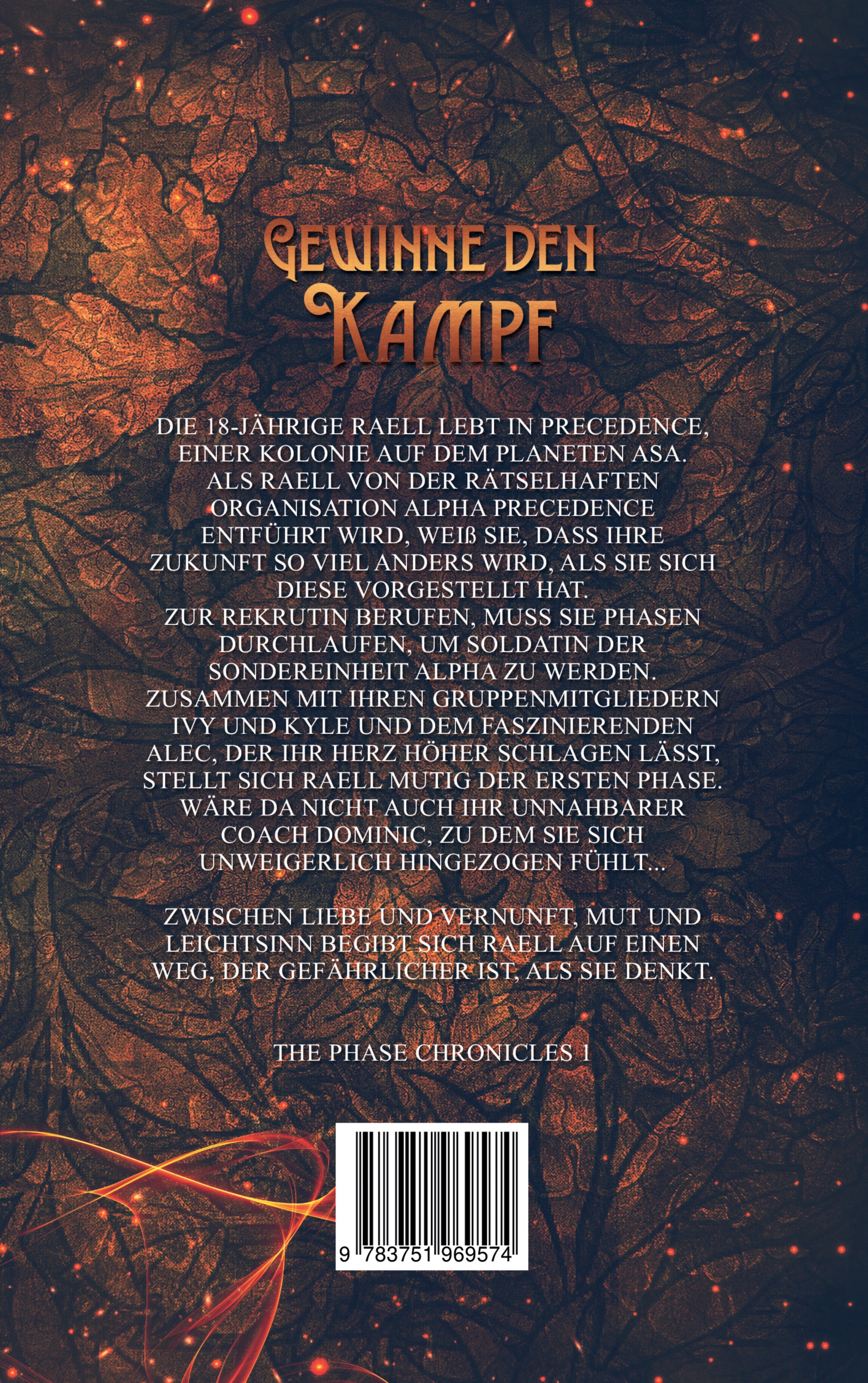 GEWINNE DEN KAMPFDie 18-jährige Raell lebt in Precedence, einer Kolonie auf dem Planeten Asa.Als Raell von der rätselhaften Organisation Alpha Precedence entführt wird, weiß sie, dass ihre Zukunft so viel anders wird, als sie sich diese vorgestellt hat.Zur Rekrutin berufen, muss sie Phasen durchlaufen, um Soldatin der Sondereinheit Alpha zu werden. Zusammen mit ihren Gruppenmitgliedern Ivy und Kyle und dem faszinierenden Alec, der ihr Herz höher schlagen lässt, stellt sich Raell mutig der ersten Phase. Wäre da nicht auch ihr unnahbarer Coach Dominic, zu dem sie sich unweigerlich hingezogen fühlt...Zwischen Liebe und Vernunft, Mut und Leichtsinn begibt sich Raell auf einen Weg, der gefährlicher ist, als sie denkt.