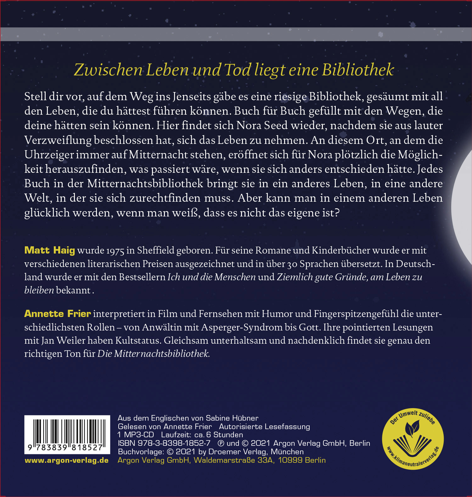| Schlagworte | Bestseller-Autor • Bibliophilie • Bibliothek • #BookTok Bestseller des Jahres • #BookTok Bestsellerliste 2023 • Depression • Jenseits • Magische Bücher • magische Hörbücher • Mental Health • Romane Liebe • Selbstfindung • Selbstmord • Shortlist BookTok Bestseller des Jahres 2023 • Sinnsuche Roman • spiegel bestseller • Spiegel Bestseller 2022 • Spiegel Bestseller 2023 • Spiegel Bestsellerliste 2022 • Suizid • tiefgründige Romane • Tod • Was wäre wenn • What If |