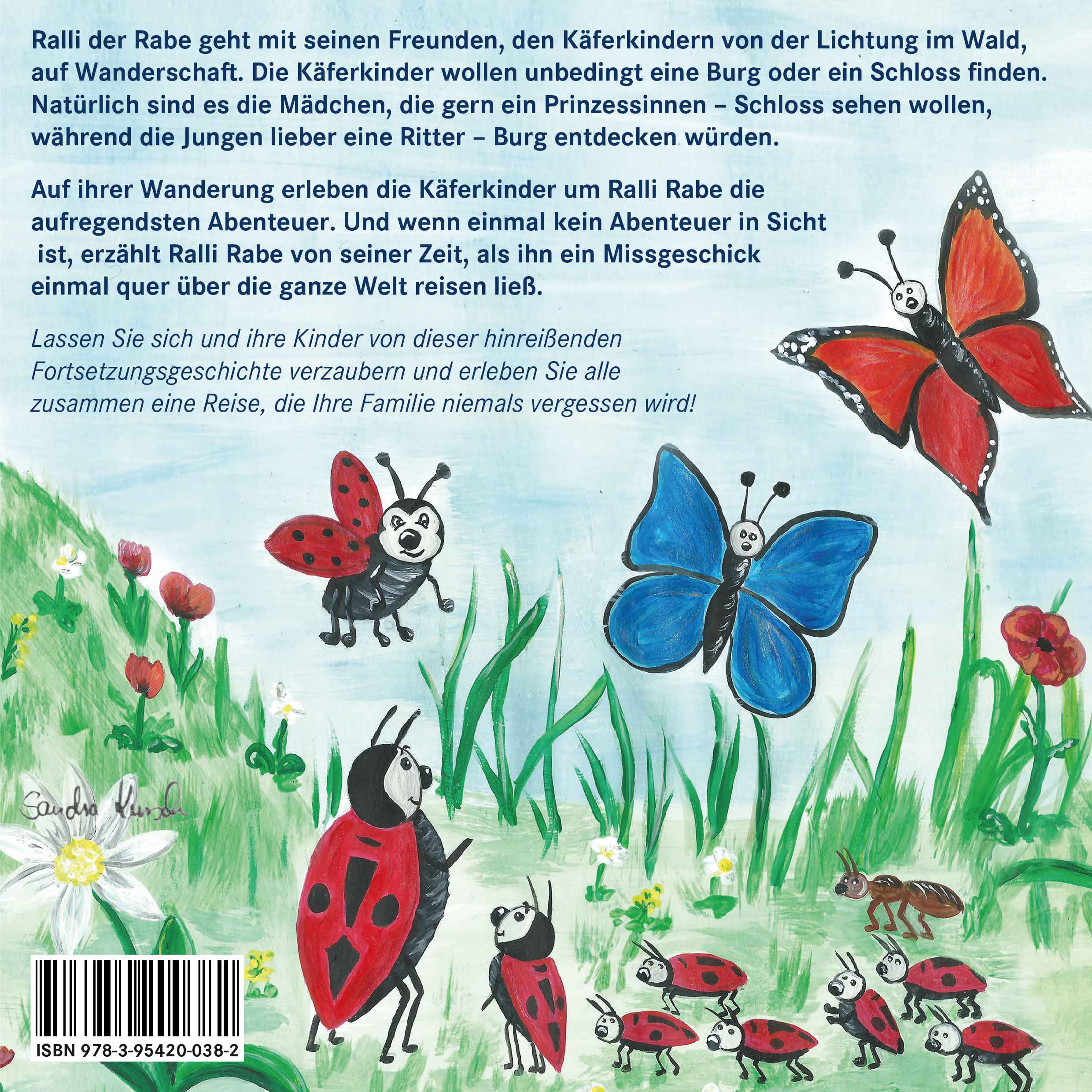 Ralli der Rabe geht mit seinen Freunden, den Käferkindern von der Lichtung im Wald, auf Wanderschaft. Die Käferkinder wollen unbedingt eine Burg oder ein Schloss finden. Natürlich sind es die Mädchen, die gern ein Prinzessinnen – Schloss sehen wollen, während die Jungen lieber eine Ritter – Burg entdecken würden.