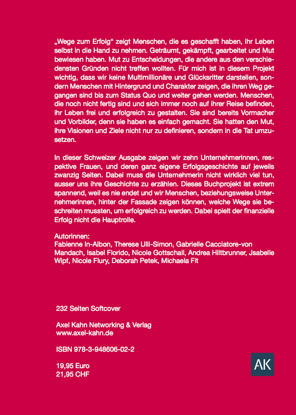 In dieser Schweizer Ausgabe zeigen wir zehn Unternehmerinnen, respektive Frauen, und deren ganz eigene Erfolgsgeschichte auf jeweils zwanzig Seiten. Dieses Buchprojekt ist extrem spannend, weil es nie endet und wir Frauen, beziehungsweise Unternehmerinnen, hinter der Fassade zeigen können, welche Wege sie beschreiten mussten, um erfolgreich zu werden. Dabei spielt der finanzielle Erfolg nicht die Hauptrolle.