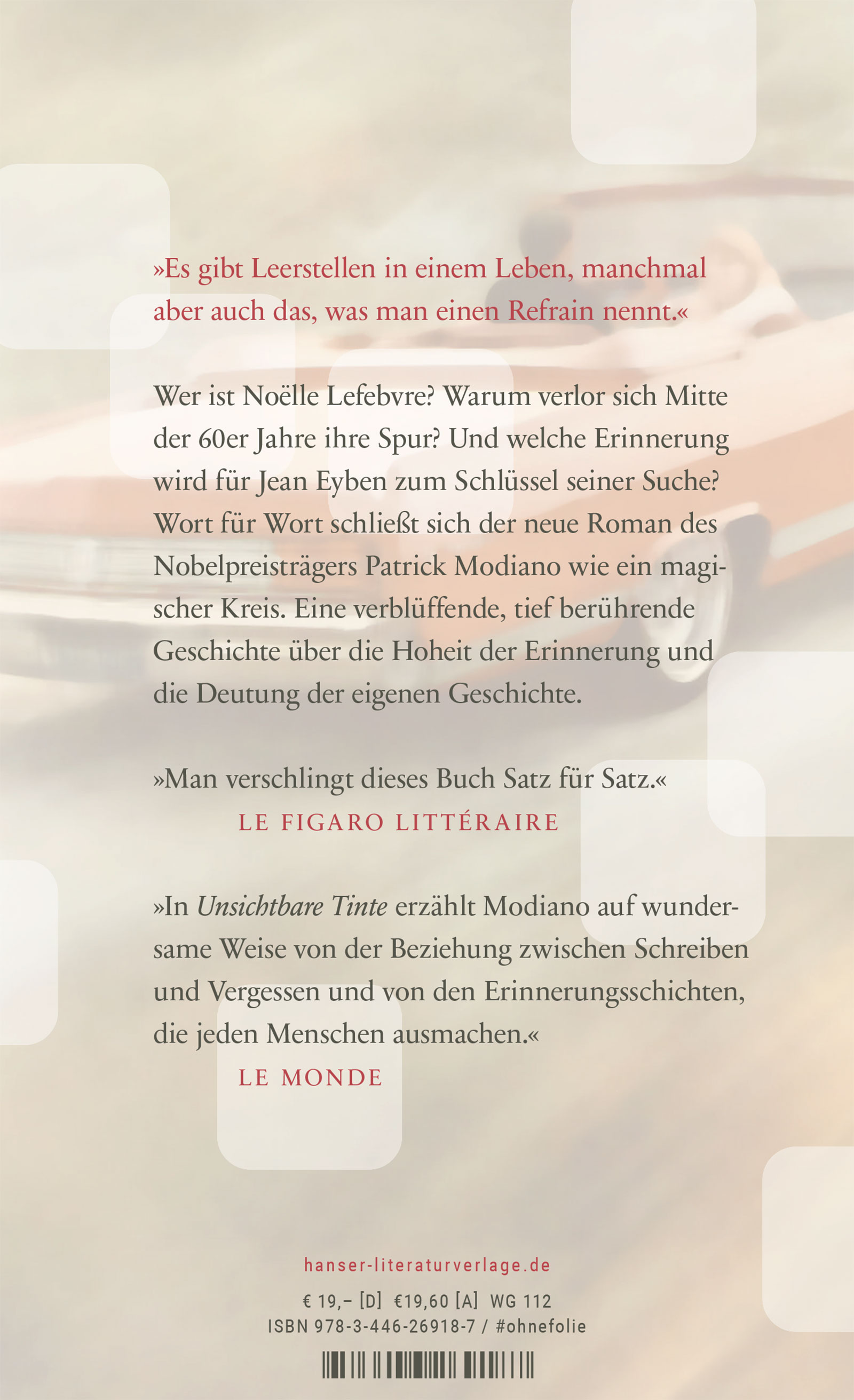 "In Modianos Romanen ist alles komplexer als anfangs gedacht. Zugleich schwebender, abgründiger – gelungener. 'Unsichtbare Tinte' ist ein treffendes Beispiel dafür.“ Niklas Bender, Frankfurter Allgemeine Zeitung, 13.03.21
