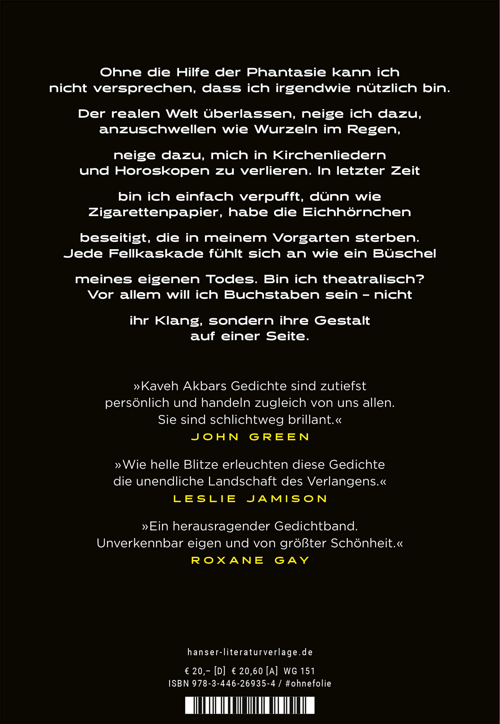 Das Debüt eines außergewöhnlich kraftvollen Lyrikers: Kaveh Akbars Gedichte sprühen Funken, sie bersten vor Beredsamkeit, Bild- und Ideenreichtum, sprachlicher Musikalität. Eine großartige neue Stimme der zeitgenössischen amerikanischen Lyrik. Wie Ocean Vuong bringt auch Akbar eine andere Kultur – die iranische – in seine Sprache ein. Kaveh Akbars schreibt Lyrik von fast ungebremster emotionaler Wucht. Gedichte eines mit sich, Gott und der Welt Ringenden, der die Finsternis kennt und die Schönheit leuchten lässt.