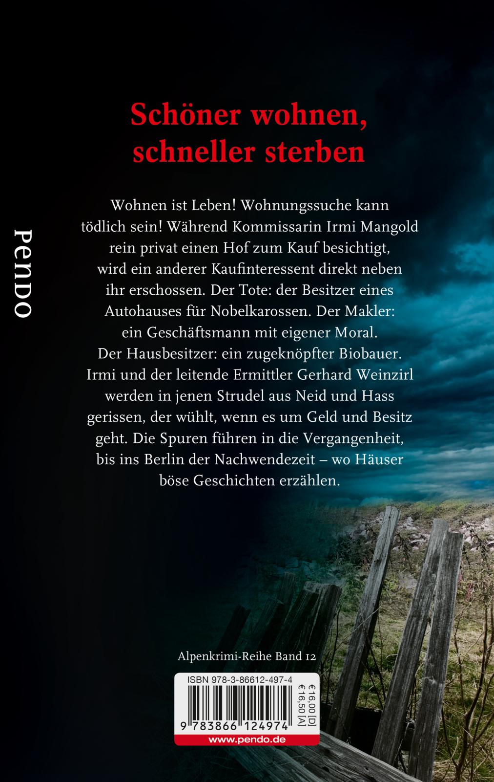 Der Hausbesitzer: ein zugeknöpfter Biobauer. Irmi und der leitende Ermittler Gerhard Weinzirl werden in jenen Strudel aus Neid und Hass gerissen, der wühlt, wenn es um Geld und Besitz geht. Die Spuren führen in die Vergangenheit, bis ins Berlin der Nachwendezeit - wo Häuser böse Geschichten erzählen.