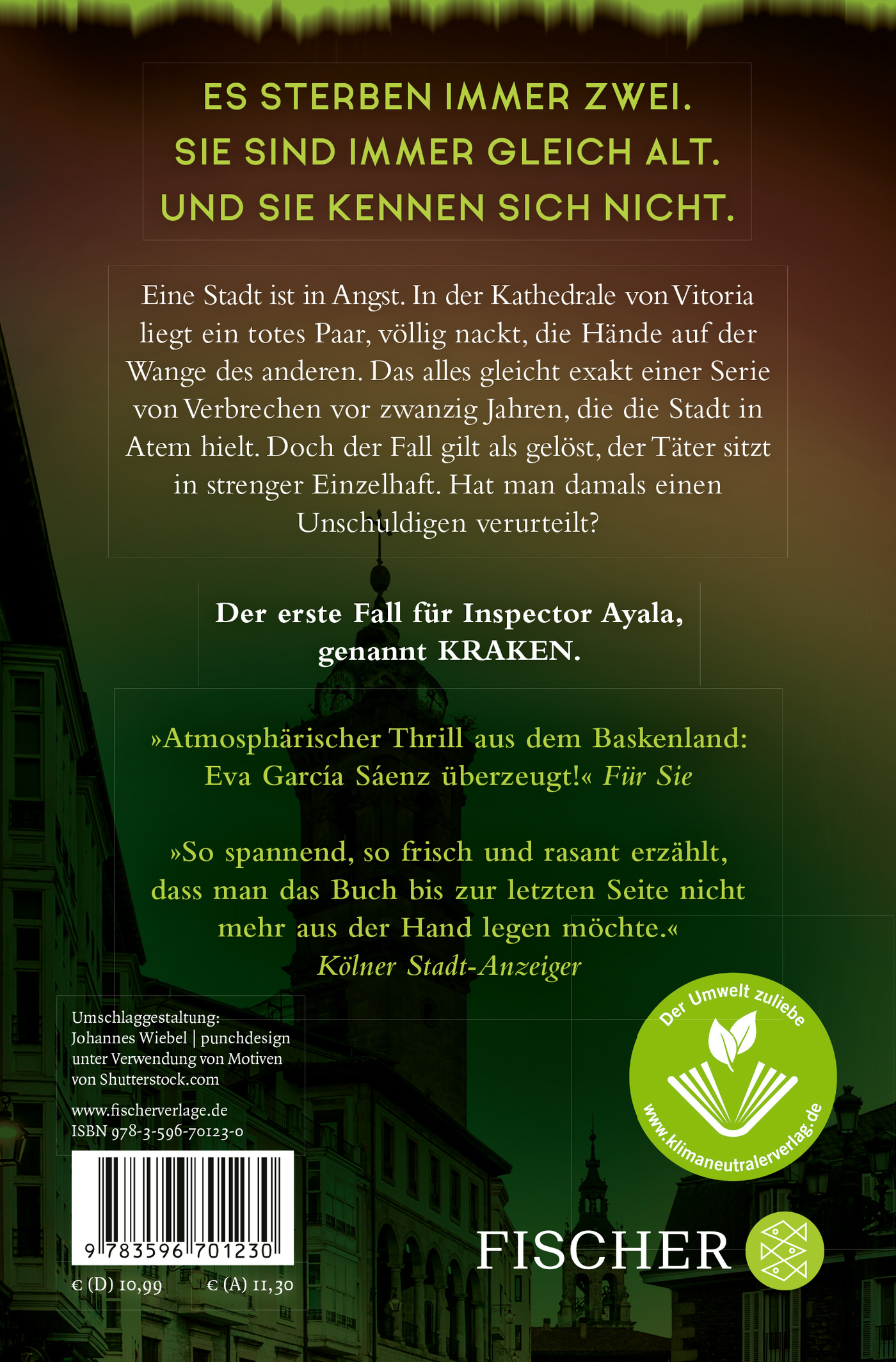 Eva García Sáenz stammt aus Vitoria im Baskenland, wo auch ihre Bücher spielen. Ihre Krimi-Serie um den Ermittler Ayala alias »Kraken« machte sie mit einem Schlag berühmt und gelangte auch in Deutschland direkt nach ganz oben auf die Bestsellerliste. Die drei Bände haben sich bis heute über eine Million Mal in Spanien verkauft, die Bücher werden in viele Sprachen übersetzt. Der erste Band, »Die Stille des Todes«, wurde verfilmt und läuft u.a. auf Netflix.