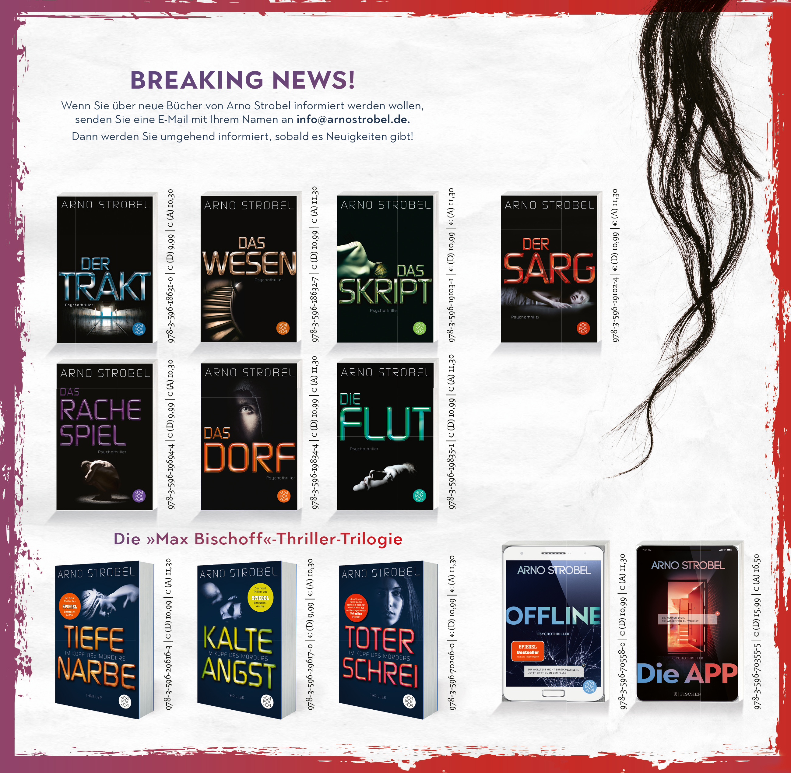 »Bei Arno Strobels Thrillern brauchen Sie kein Lesezeichen, man kann sie sowieso nicht aus der Hand legen. Packend und nervenzerreißend!« Sebastian Fitzek