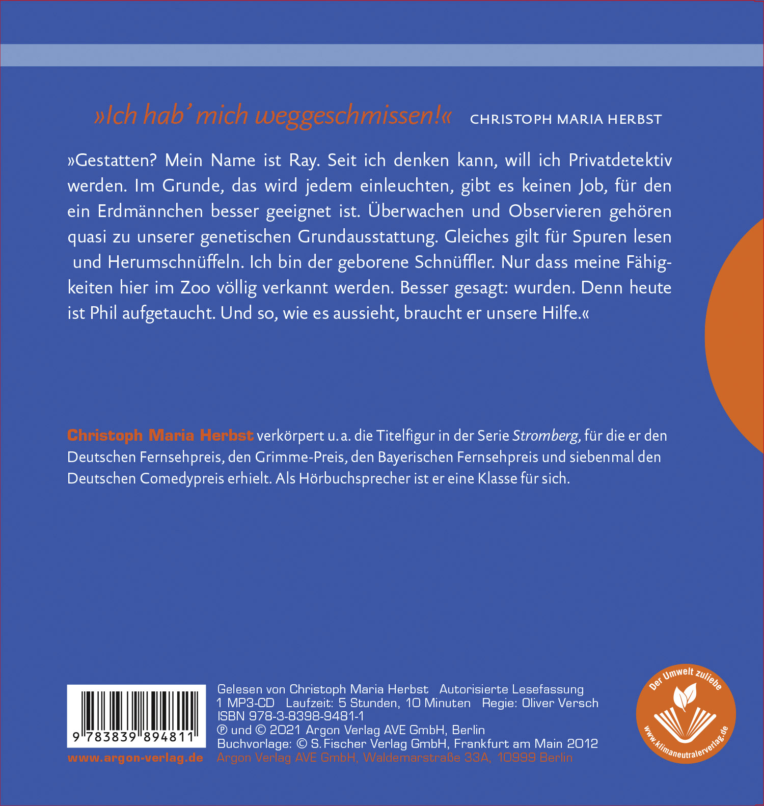 Christoph Maria Herbst ist als Hörbuchsprecher eine Klasse für sich und so etwas wie ein Erdmännchen ehrenhalber. Seit ihrem ersten Abenteuer steht er Rufus und Ray treu zur Seite.