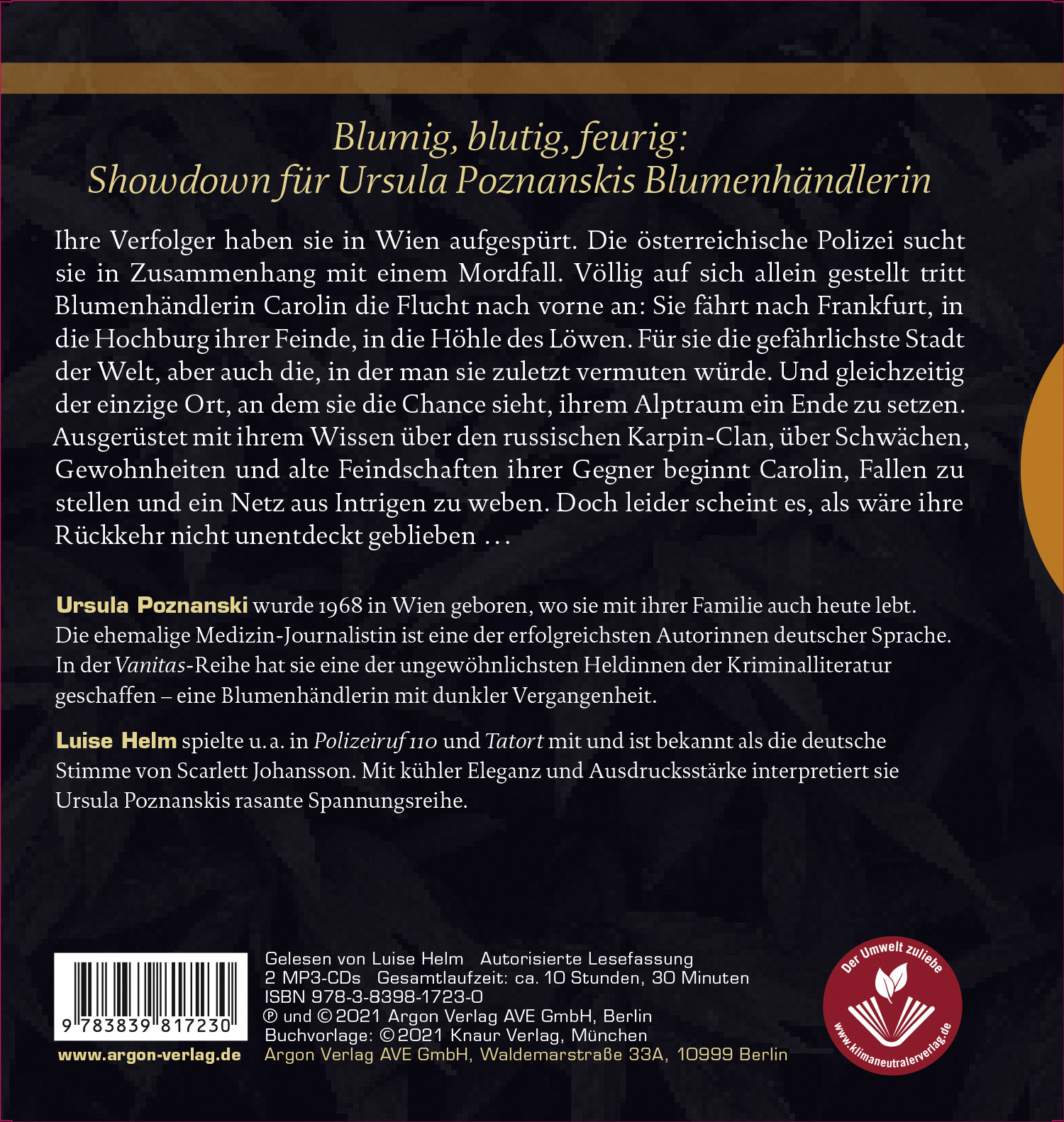 Blumig, blutig, feurig: Showdown für Ursula Poznanskis Blumenhändlerin: Abschluss der rasanten Thriller-Trilogie. Mit kühler Eleganz und Ausdrucksstärke interpretiert Luise Helm Ursula Poznanskis rasante Spannungsreihe.