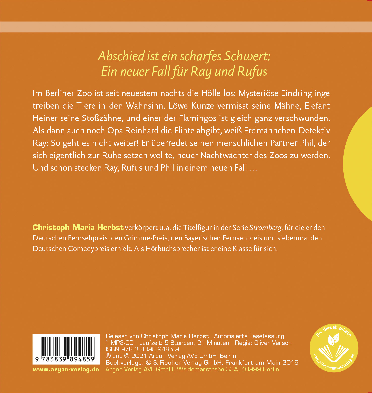 Christoph Maria Herbst ist als Hörbuchsprecher eine Klasse für sich und so etwas wie ein Erdmännchen ehrenhalber. Seit ihrem ersten Abenteuer steht er Rufus und Ray treu zur Seite.